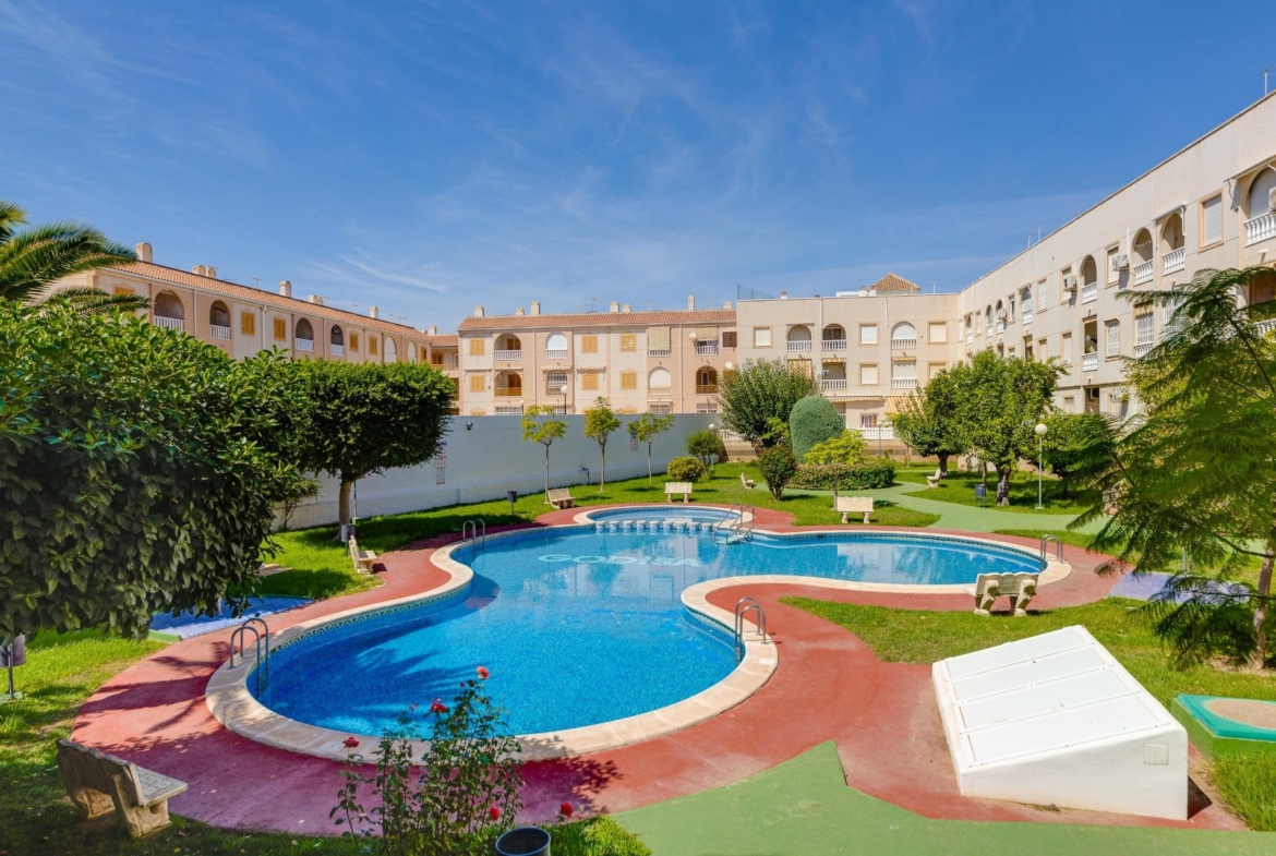 Apartament o powierzchni 58 m² jest w dobrym stanie i posiada wbudowane szafy, zapewniające dużo miejsca do przechowywania. Sprzedawany jest umeblowany i wyposażony, gotowy do zamieszkania. Wygodę dodatkowo zwiększa miejsce parkingowe wliczone w cenę oraz dostęp do wspólnego basenu i ogrodu, idealnego do relaksu lub spędzania czasu z rodziną. Położony na pierwszym piętrze budynku bez windy, ten dom łączy w sobie praktyczność i styl.