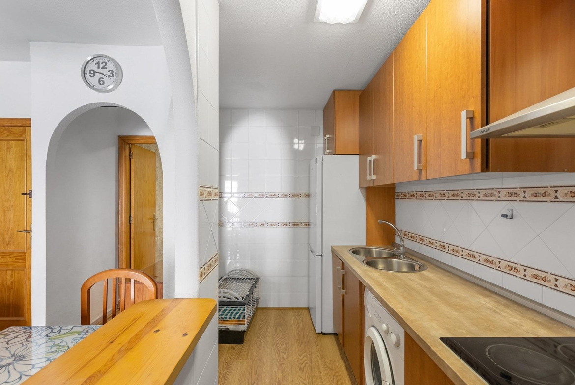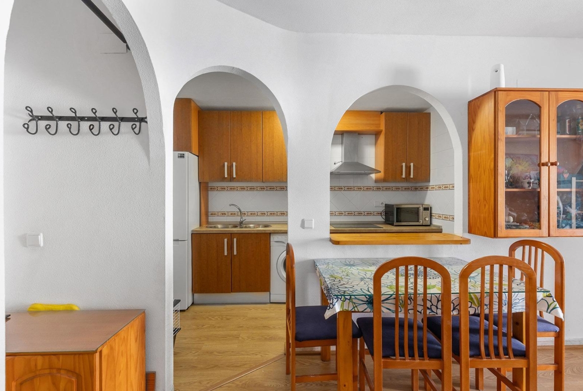 Jasny, jednopokojowy apartament z  łazienką na parterze , zaledwie piec  minut od plaży  los Locos, jednej z najbardziej kultowych plaż w okolicy. Kompleks oferuje wspólny basen, idealny do korzystania ze słonecznych dni, co jest bardzo cenioną cechą w tej nadmorskiej okolicy. Po wejściu do apartamentu znajduje się przytulny salon z jadalnią, klimatyzacją i wentylatorem sufitowym, zapewniającym komfort przez cały rok. Meble łączą neutralne tonacje z wyrazistymi kolorami, tworząc ciepłą i nowoczesną atmosferę. Z salonu można przejść do niedawno odnowionej kuchni otwartej, wyposażonej w drewniane szafki, praktyczny blat i wszystkie sprzęty AGD, w tym pralkę i kuchenkę mikrofalową, a także barek śniadaniowy dla dodatkowej wygody. Sypialnia z łóżkami piętrowymi oferuje funkcjonalne wykorzystanie przestrzeni, a zadbana łazienka oferuje wszystko, czego potrzebujesz do codziennego użytku. Nieruchomość jest sprzedawana umeblowana i gotowa do zamieszkania od pierwszego dnia, bez konieczności remontu. Otoczony wszelkimi udogodnieniami – restauracjami, supermarketami, kawiarniami i komunikacją miejską – dom oferuje komfort i jakość życia, idealny do stałego zamieszkania, na wakacje lub jako inwestycja. Podatek od nieruchomości (IBI): 155 EUR / rocznie, e opłaty wspólnotowe: 81 EUR / Kwartalnie.