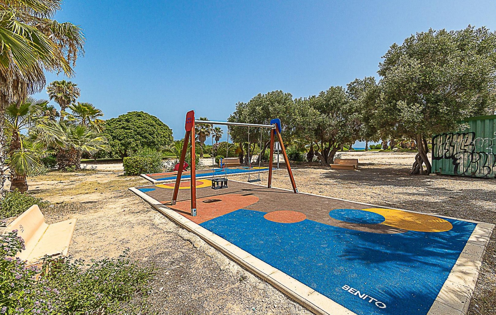 Apartament jest w pełni umeblowany i wyposażony w sprzęt AGD, posiada wbudowane szafy, instalację elektryczną, a jego północno-zachodnia ekspozycja zapewnia komfortową temperaturę przez cały rok. Dla mieszkańców dostępny jest również basen wspólnotowy, doskonały na gorące, letnie dni.