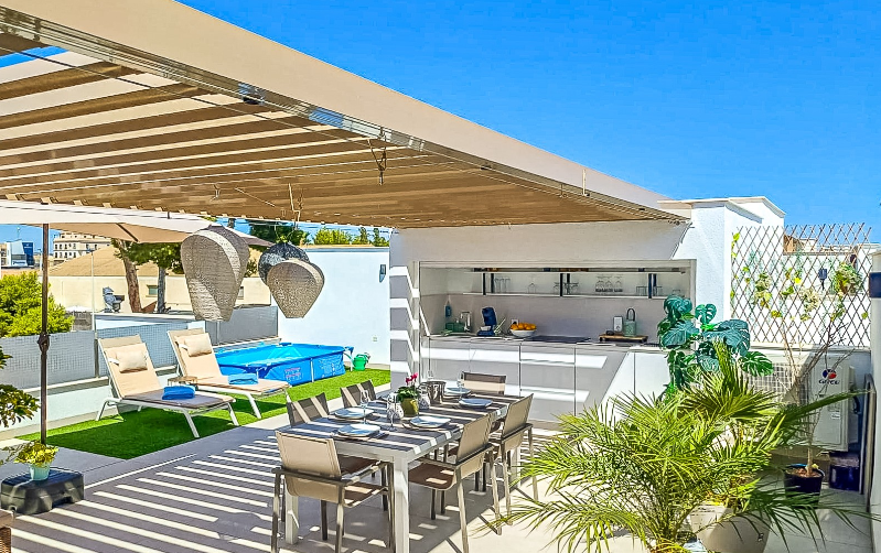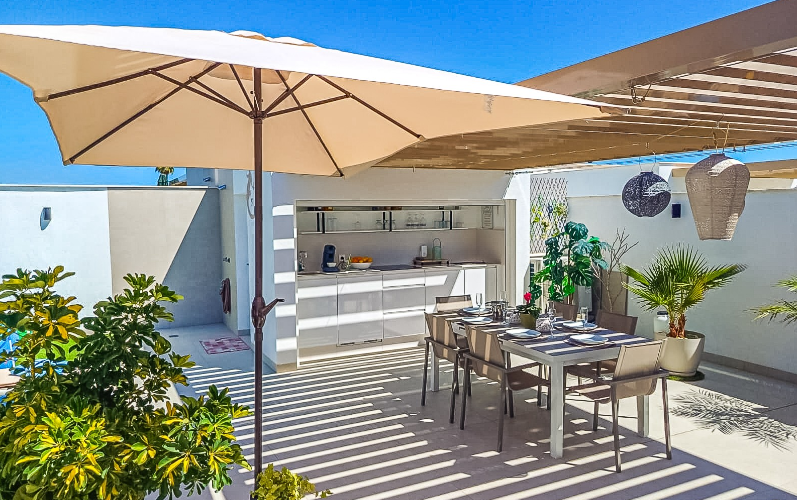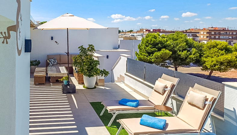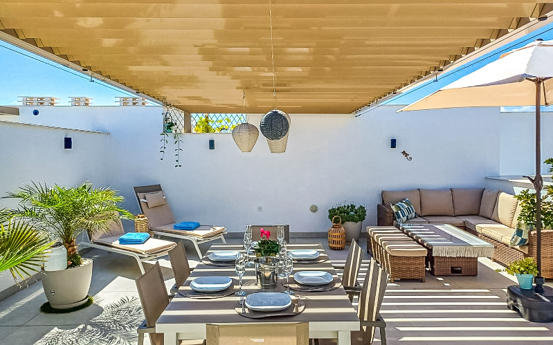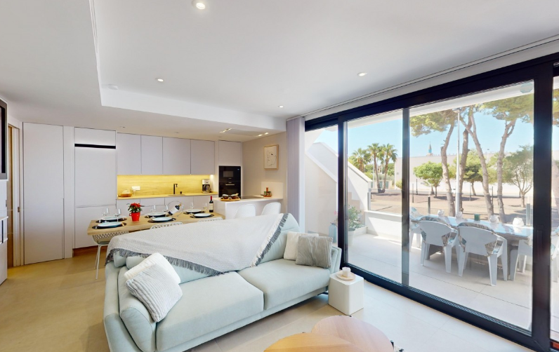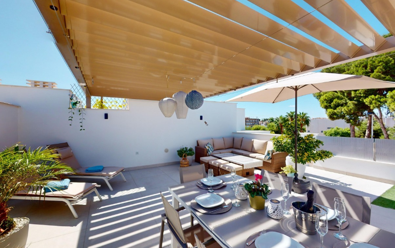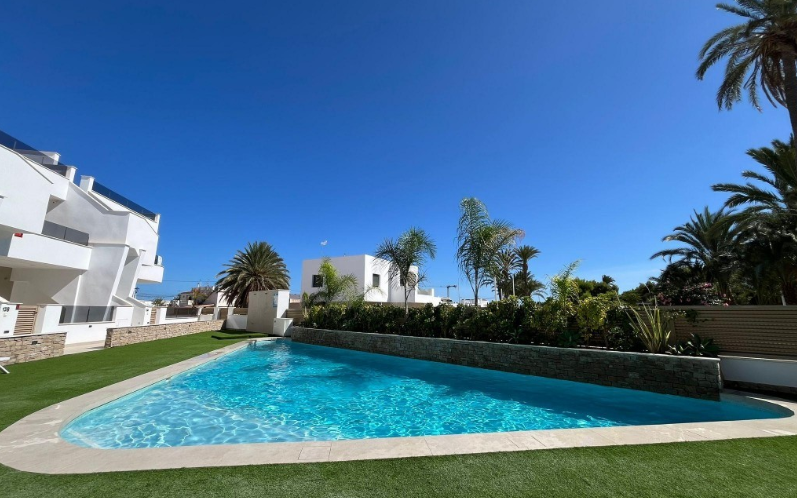 Mamy przyjemność przedstawić wyjątkowy penthouse typu top-floor bungalow, znajdujący się w jednej z najbardziej pożądanych lokalizacji San Pedro del Pinatar. To nowoczesne mieszkanie gwarantuje luksusowy i komfortowy styl życia – zaledwie kilka kroków od wszystkich udogodnień, takich jak market Consum, cotygodniowy targ, sklepy oraz tętniące życiem centrum.