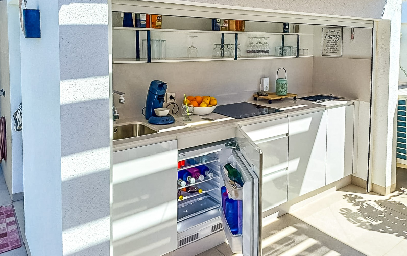kompletną kuchnię zewnętrzną (lodówka, płyta, grill, roleta automatyczna)