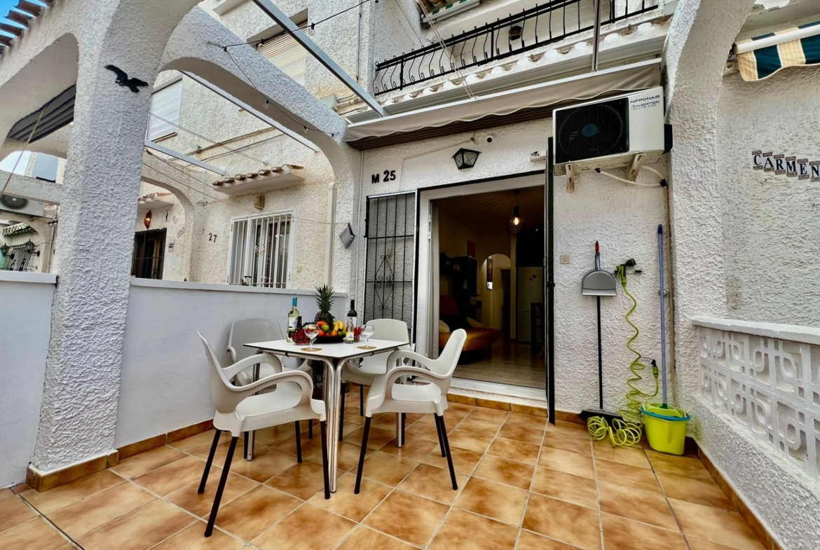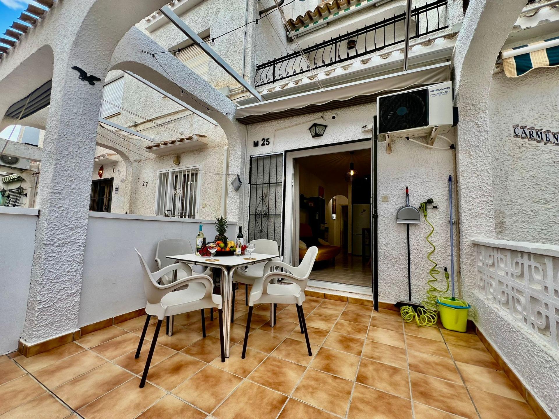 Przytulny bungalow na parterze o powierzchni zabudowanej 36 m², położony w doskonałej lokalizacji w Torrevieja, zaledwie 200 metrów od morza i w pobliżu plaż El Acequión oraz Los Náufragos.