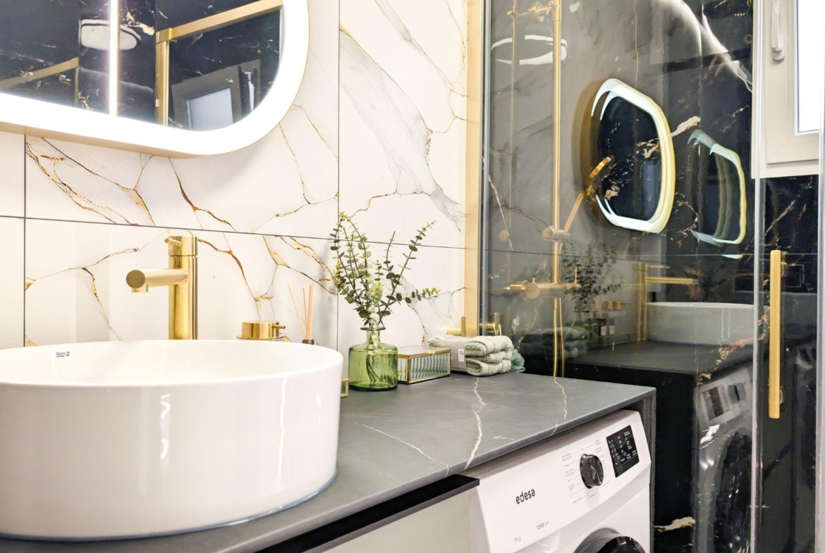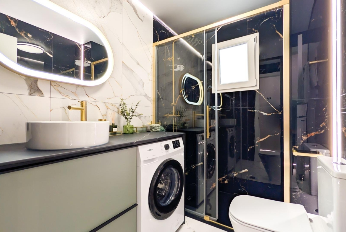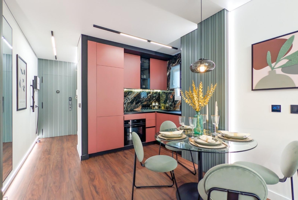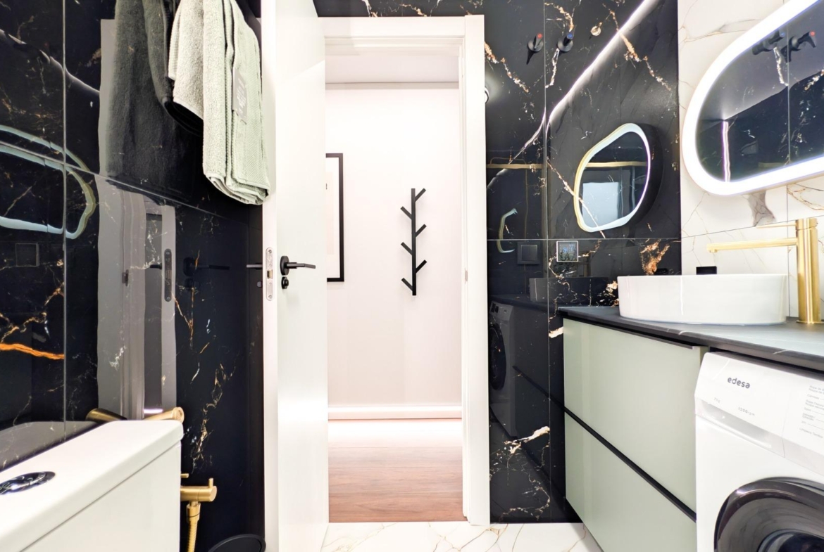 Mieszkanie przeszło kompleksową renowację według projektu architekta wnętrz i po remoncie nie było jeszcze zamieszkane. Wymieniono wszystkie instalacje – elektryczną i wodno-kanalizacyjną – a także okna, podłogi, ściany i sufity podwieszane, co gwarantuje najwyższą jakość wykończenia i nowoczesny styl.