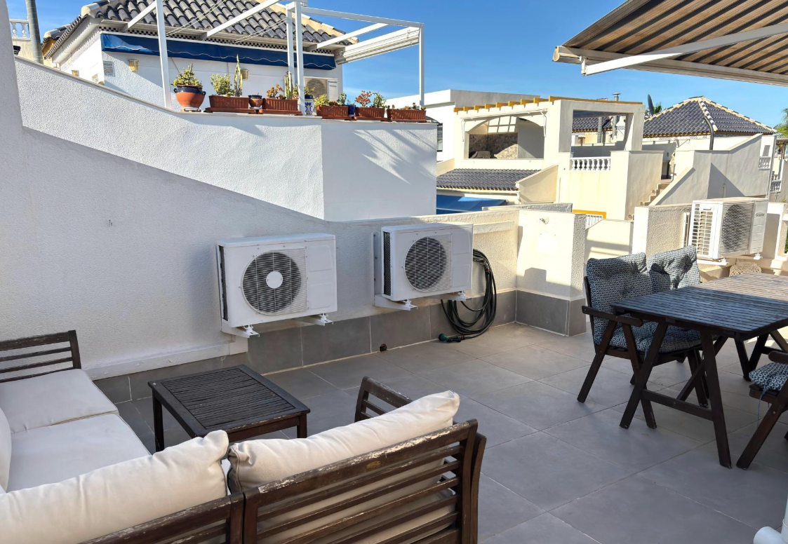 Przestronny dom w zabudowie szeregowej położony w cenionej i spokojnej dzielnicy Los Balcones w Torrevieja to propozycja dla osób szukających komfortu, prywatności oraz funkcjonalnego układu pomieszczeń – zarówno do zamieszkania na stałe, jak i jako dom wakacyjny lub inwestycja pod wynajem.