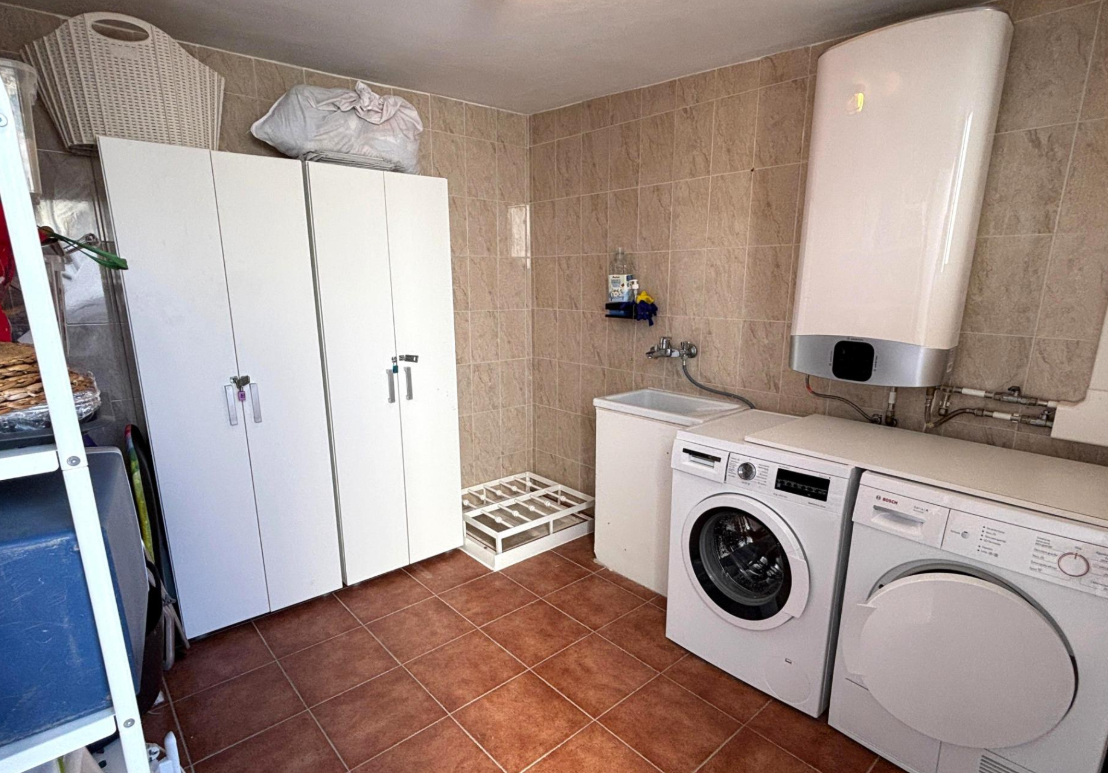 Dom jest częścią zadbanej urbanizacji z dużym basenem wspólnym, oferującym idealne warunki do relaksu w śródziemnomorskim klimacie. Dodatkowo nieruchomość posiada tarasy, solarium, schowek, zabudowane szafy, klimatyzację typu split, ogród oraz przeszkloną strefę tarasową, co zwiększa komfort użytkowania przez cały rok.
