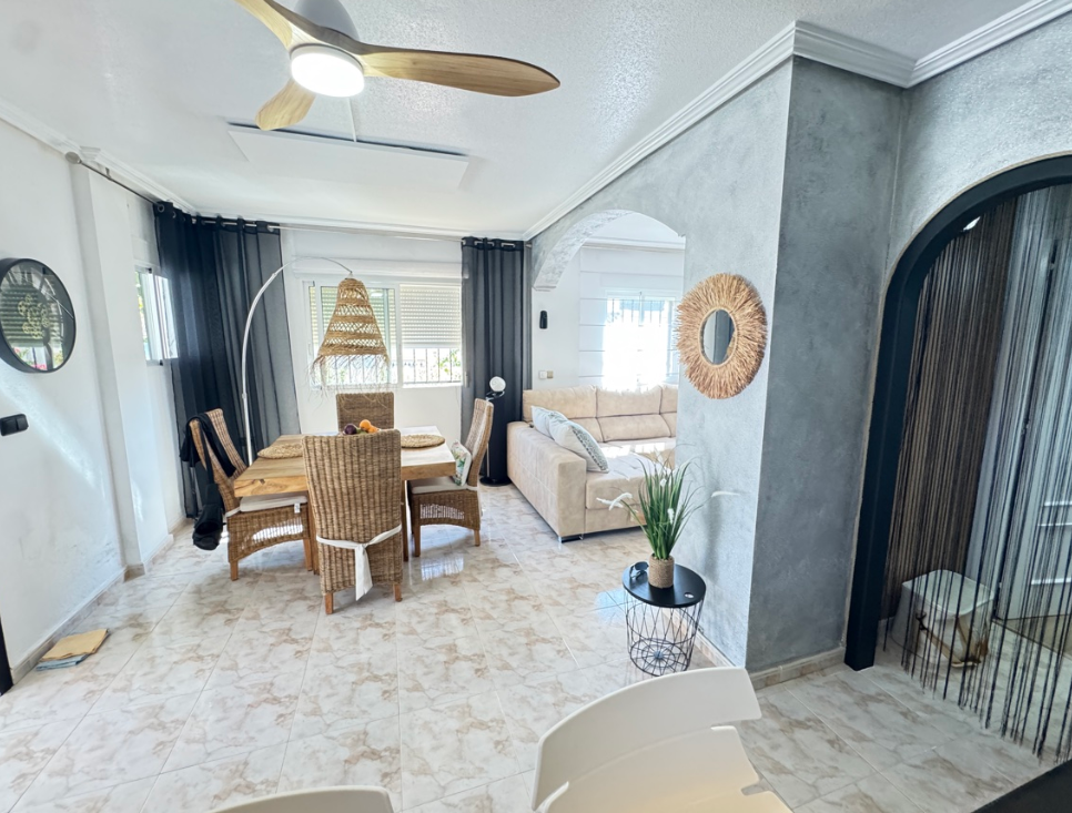 Dom położony w spokojnej i cenionej urbanizacji Pinada Golf 1 w Villamartin to propozycja dla osób, które szukają komfortowej przestrzeni do życia w otoczeniu zieleni i w pobliżu udogodnień.
