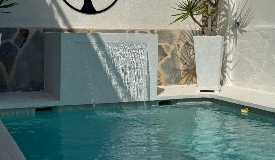 Jednym z głównych atutów tej oferty jest prywatny basen z efektowną fontanną, który tworzy wyjątkową atmosferę sprzyjającą relaksowi i odpoczynkowi w ciepłe, słoneczne dni.