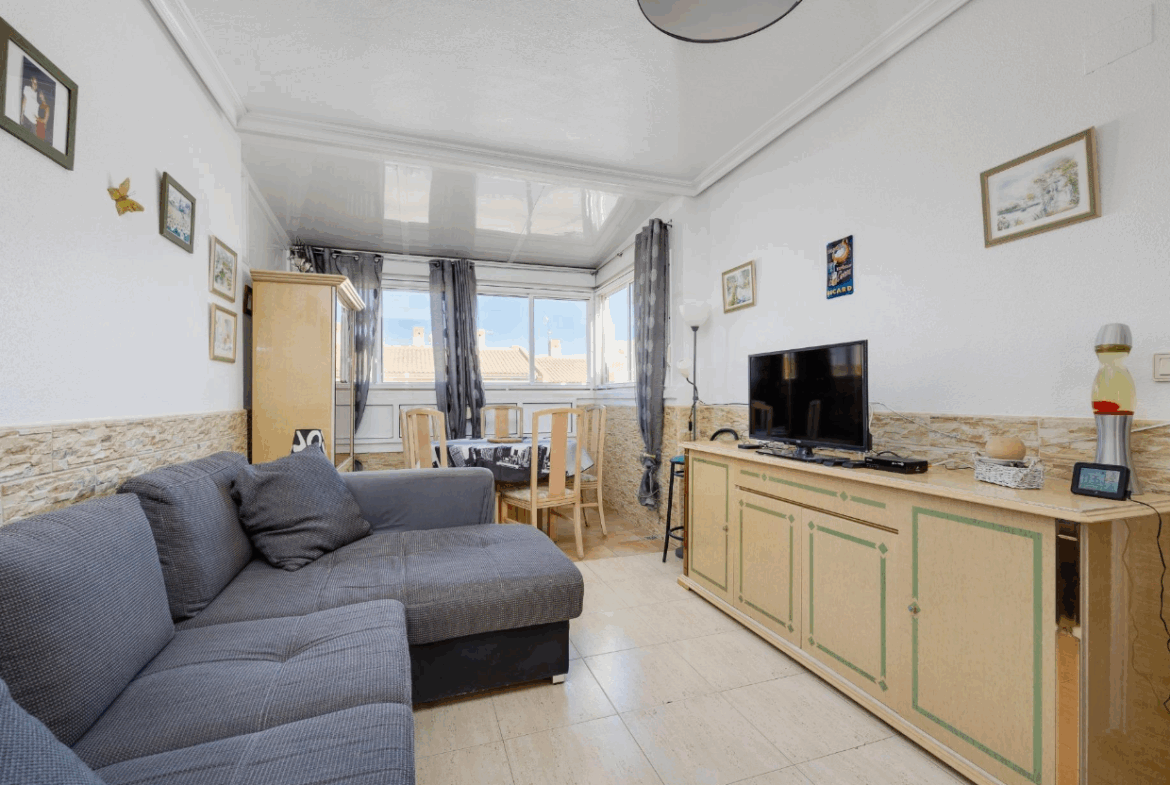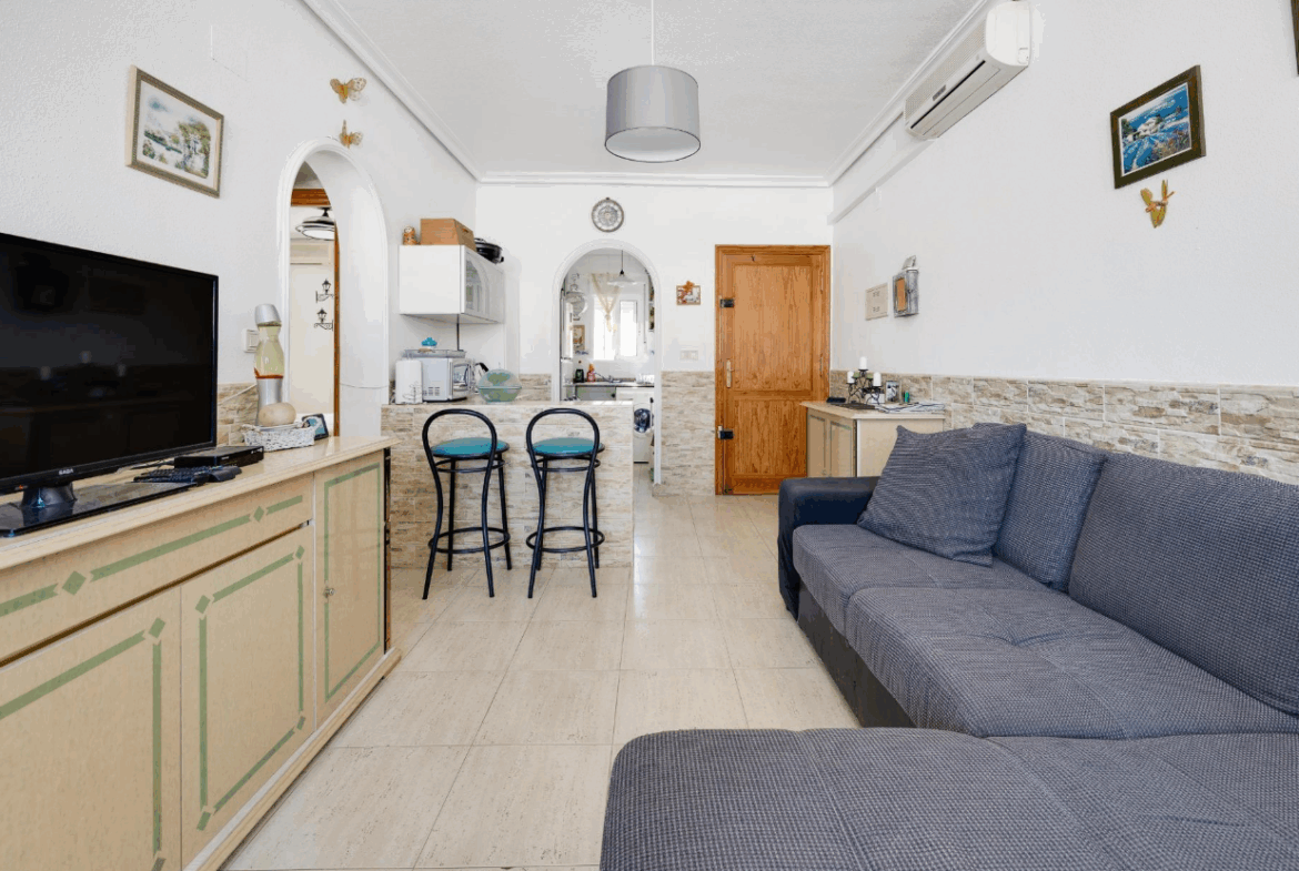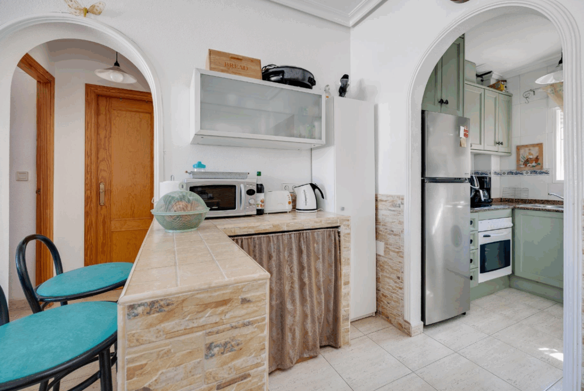 Przytulny bungalow na najwyższym piętrze w popularnej dzielnicy Aguas Nuevas w Torrevieja to idealna propozycja dla osób marzących o stylu życia w śródziemnomorskim klimacie.