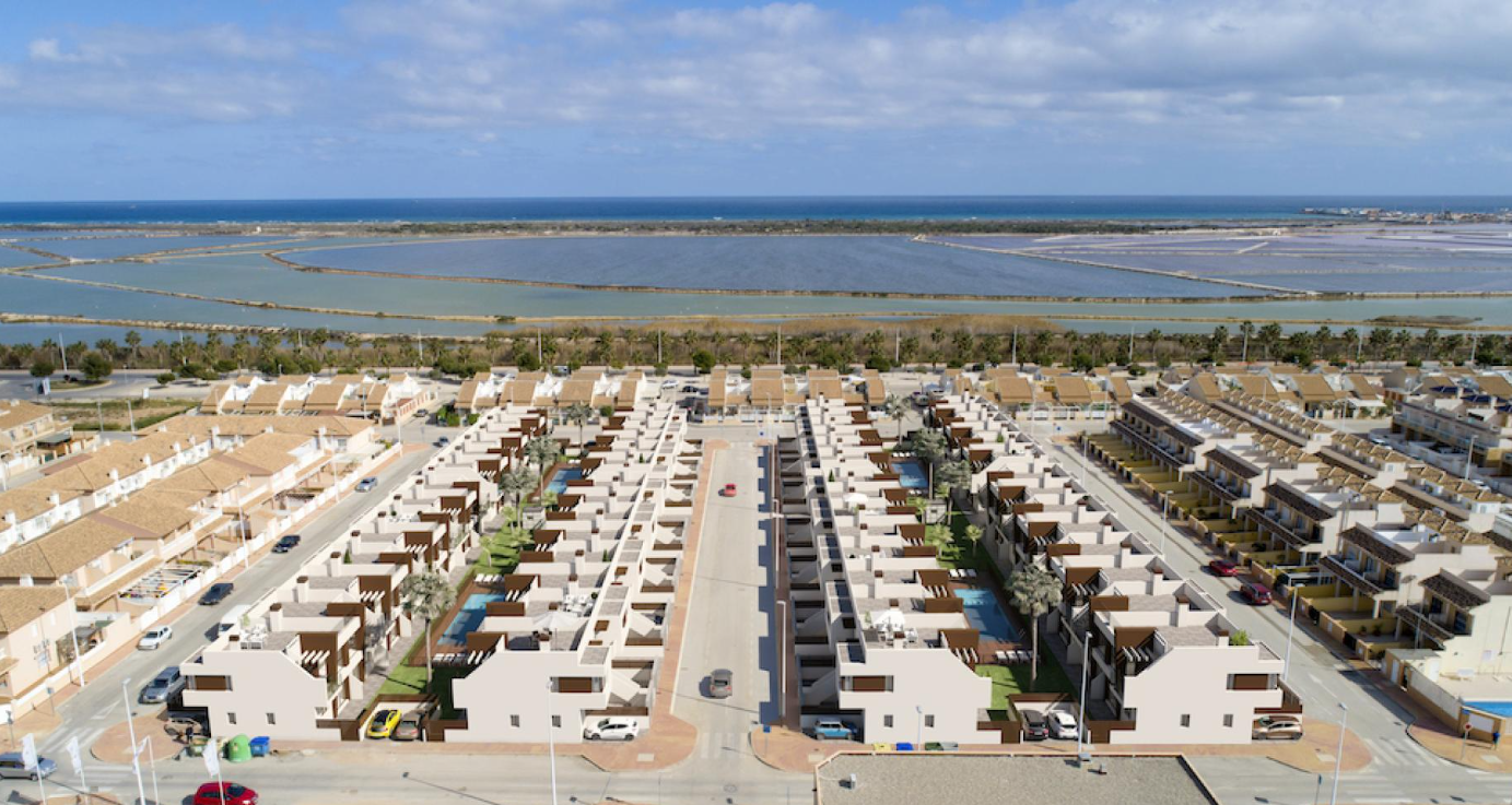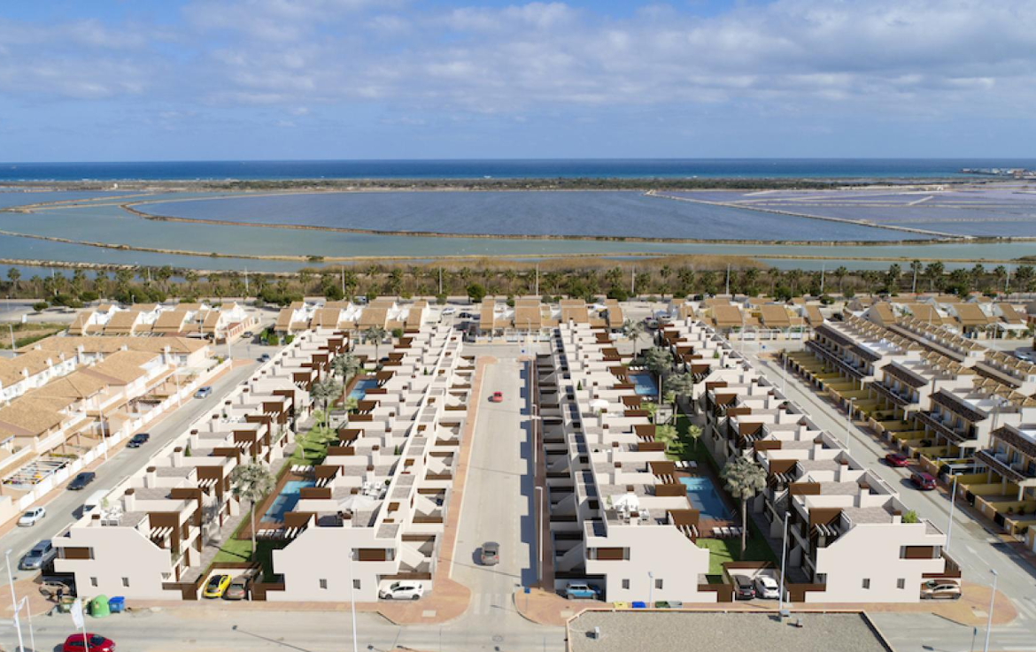 Osiedle znajduje się w pobliżu słonych jezior w San Pedro del Pinatar. Ciesz się spokojem, jaki oferuje ta lokalizacja, z bezpośrednim dostępem do tego pięknego, zielonego otoczenia i natury. Miasto oferuje piękne plaże, tętniącą życiem promenadę oraz szereg restauracji i sklepów. San Pedro del Pinatar słynie również z kąpieli błotnych, cenionych ze względu na swoje właściwości terapeutyczne. Bliskość rezerwatów przyrody, pól golfowych i obiektów rekreacyjnych sprawia, że jest to popularne miejsce zarówno dla stałych mieszkańców, jak i turystów.