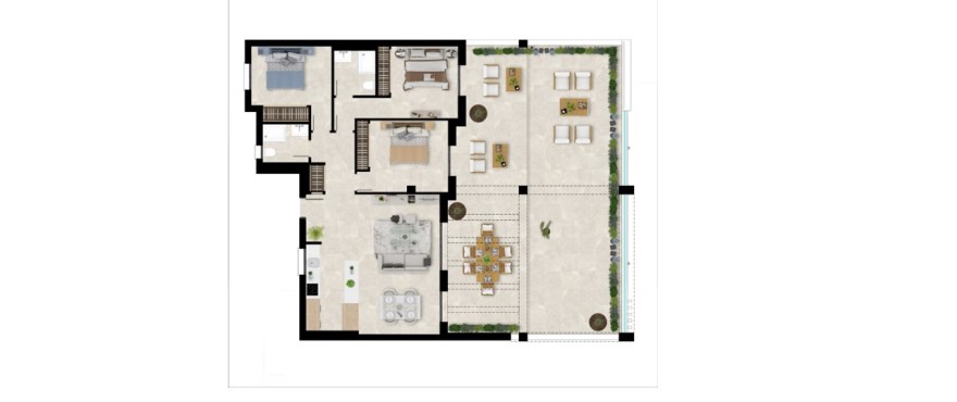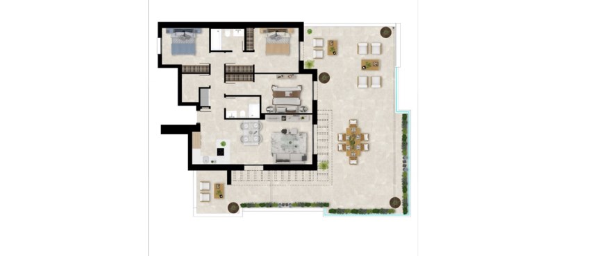 3 sypialnie / 3 łazienki, od 535.000€, o powierzchni 111,43 m² z tarasem 109,04 m², orientacja południowo-zachodnia, termin oddania: luty 2026.