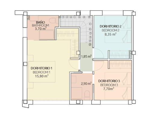 🏡 Domy w zabudowie szeregowej rozłożone są na dwóch kondygnacjach i dają możliwość wyboru – bez dodatkowych kosztów – 2, 3 lub 4 sypialni.