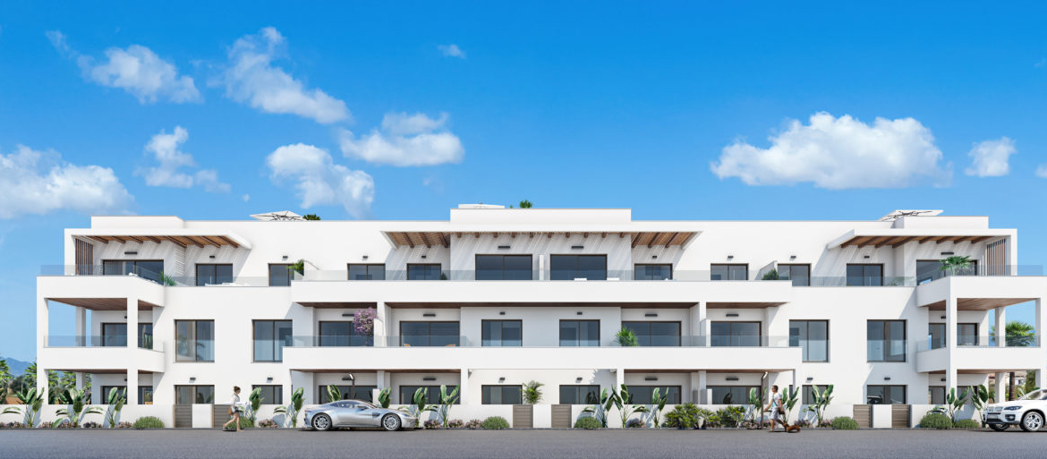 Nowo wybudowane apartamenty z dwiema lub trzema sypialniami, przestronnymi tarasami i pięknymi częściami wspólnymi w Los Alcázares.