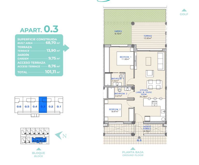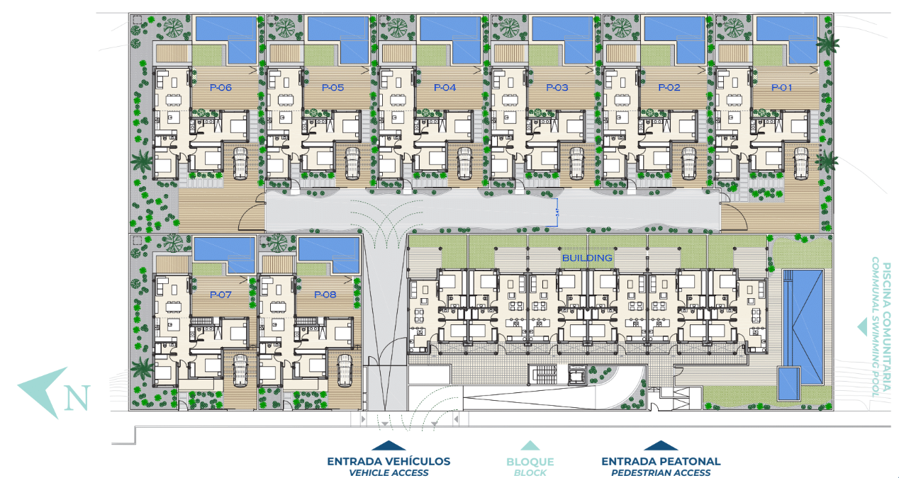 Każdy apartament został starannie zaprojektowany z nowoczesnym, otwartym planem, który płynnie łączy kuchnię z salonem, tworząc jasne i przytulne przestrzenie. Z możliwością wyboru dwóch lub trzech sypialni i dwóch łazienek. Przestrzenie dzienne płynnie przechodzą na przestronne tarasy, idealne do cieszenia się śródziemnomorskim słońcem i spokojnym otoczeniem.