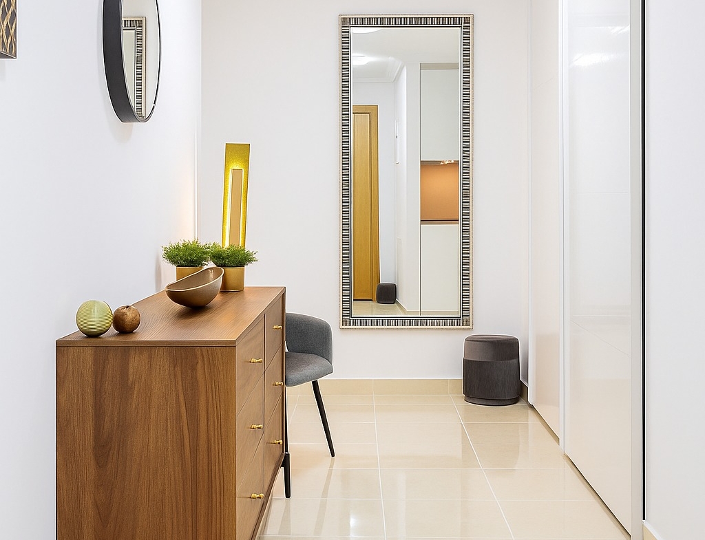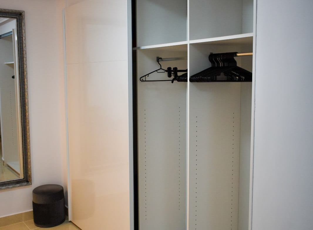 Już od progu wita nas funkcjonalny przedpokój z dużą szafą w zabudowie, idealną do przechowywania rzeczy na co dzień.