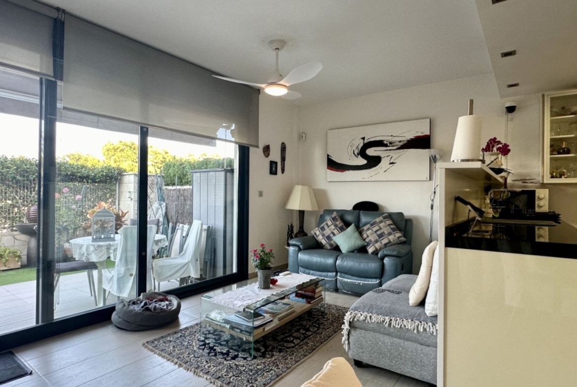 Nowoczesny i starannie utrzymany dolny bungalow, położony na parterze kameralnego osiedla w cenionej dzielnicy Punta Prima, oferuje komfortową przestrzeń do życia w słonecznym klimacie Costa Blanca. Wybudowany w 2016 roku, znajduje się w bardzo dobrym stanie i jest gotowy do użytkowania bez konieczności ponoszenia dodatkowych kosztów.
