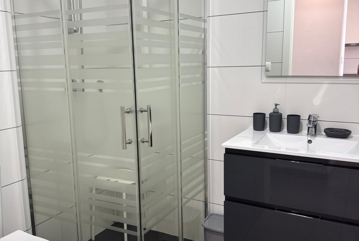 Mieszkanie oferuje 68 m² powierzchni całkowitej (ok. 65 m² powierzchni użytkowej) i zostało zaprojektowane z myślą o wygodzie oraz funkcjonalności. W jego skład wchodzą dwie sypialnie z wbudowanymi szafami, dwie w pełni wyposażone łazienki – w tym jedna z ogrzewaniem podłogowym – oraz jasny salon z wyjściem na prywatny ogród o powierzchni około 20 m².
