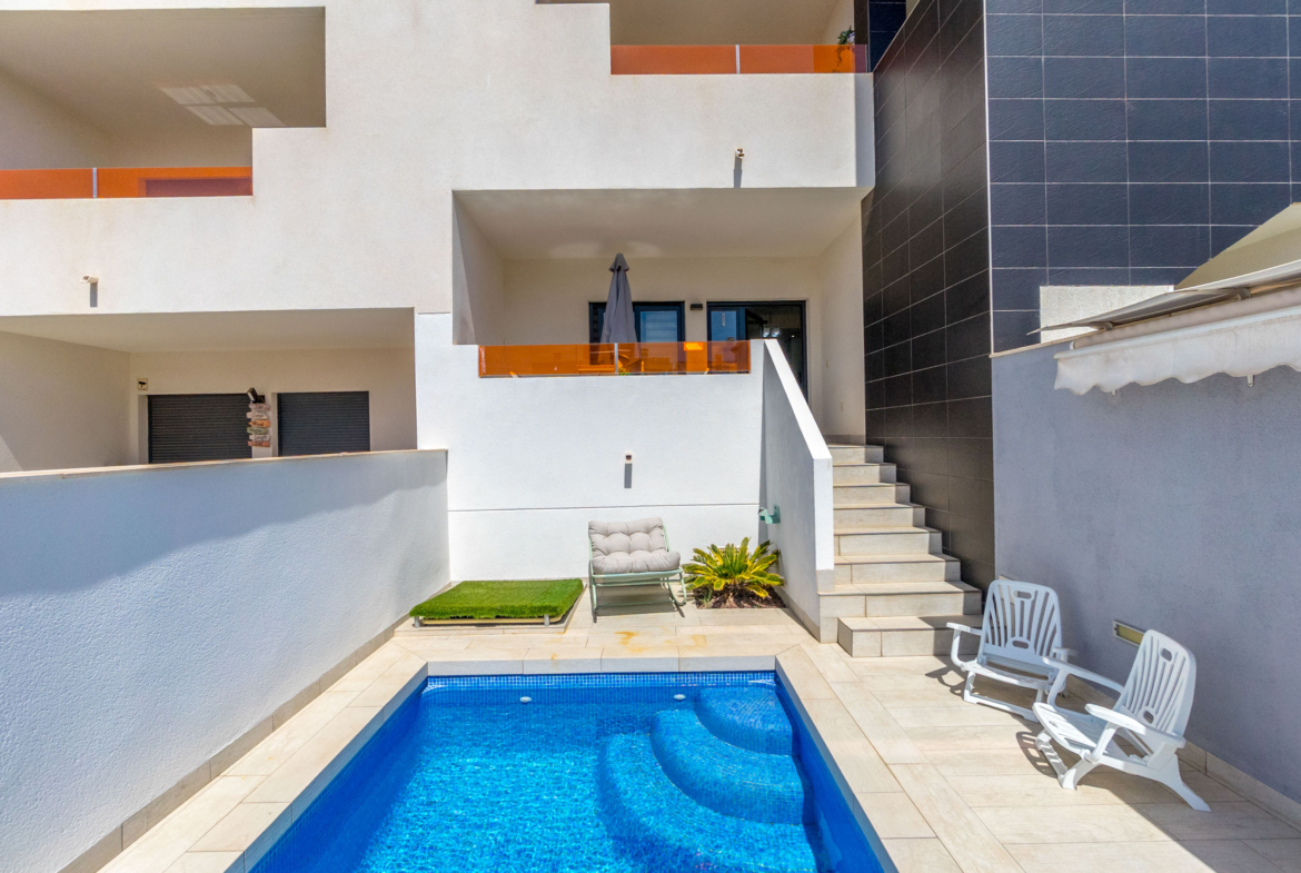 Twoja prywatna oaza słońca. Wyobraź sobie, że budzisz się każdego dnia w nowoczesnym, parterowym bungalowie, od strony południowej, skąpanym w świetle i cieple przez cały rok. Ciesz się komfortem dwóch sypialni z łazienkami, przestronnego salonu z jadalnią i otwartą kuchnią oraz przestrzeni zaprojektowanych z myślą o Twoim dobrym samopoczuciu: werandy, patio z tyłu domu i prywatnego basenu, w którym możesz się ochłodzić, kiedy tylko zechcesz. Nieruchomość posiada licencję turystyczną. Jest urządzona w nowoczesnym stylu i wyposażona w centralną klimatyzację (ogrzewanie i chłodzenie), elektryczne rolety i wiele innych udogodnień. Będziesz mieć również dostęp do wspólnego basenu z terenami zielonymi, idealnymi do relaksu lub spędzania czasu z przyjaciółmi i rodziną. Lokalizacja jest bezkonkurencyjna: zaledwie kilka kroków od centrum handlowego, supermarketu i wszystkich niezbędnych udogodnień. Do dyspozycji jest również wspólny parking zewnętrzny. Gotowy do zamieszkania i cieszenia się. Twój nowy śródziemnomorski dom czeka!