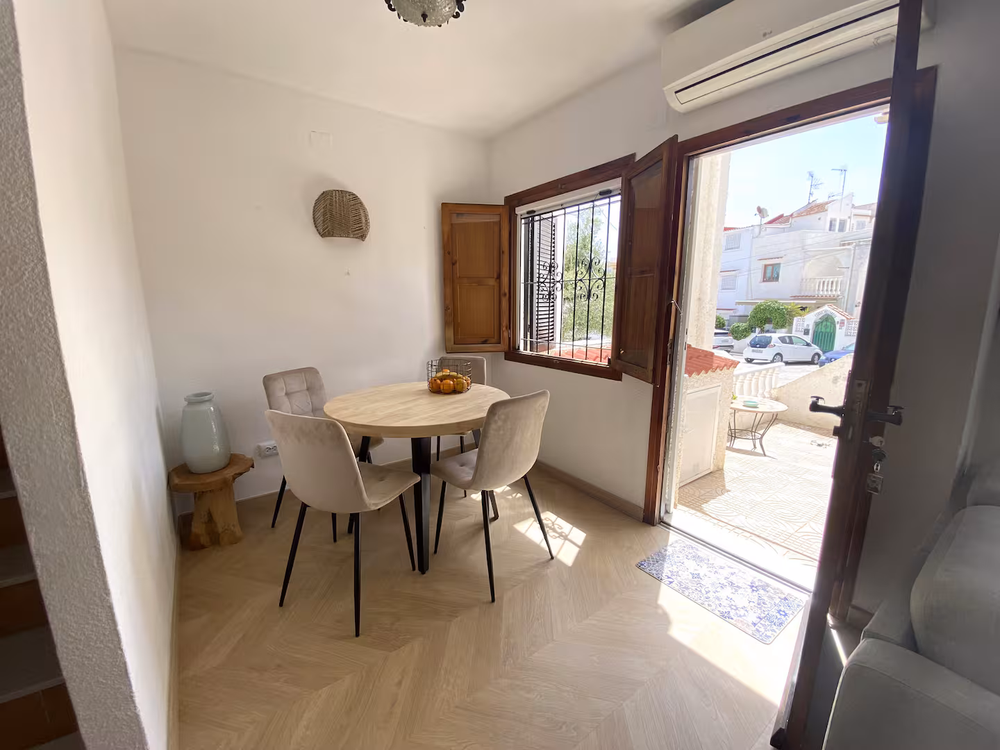 Z przyjemnością prezentujemy wyjątkową nieruchomość położoną w jednej z najbardziej pożądanych dzielnic Torrevieja – Calas Blanca. Ten odnowiony dom w zabudowie szeregowej łączy nowoczesny design z wygodą i śródziemnomorskim klimatem.