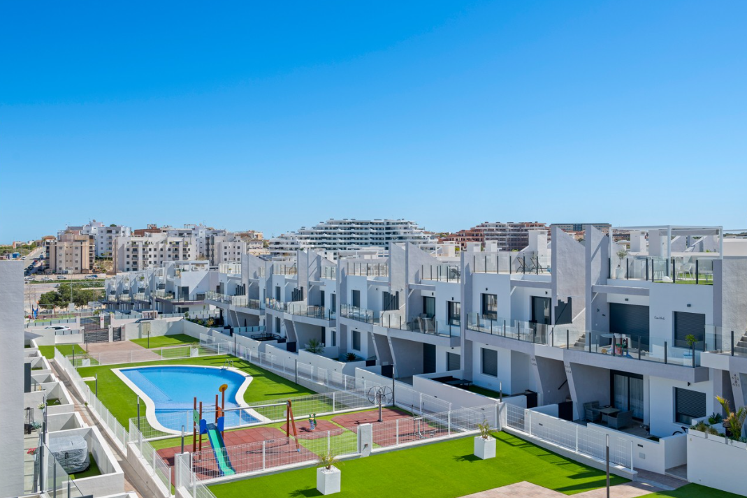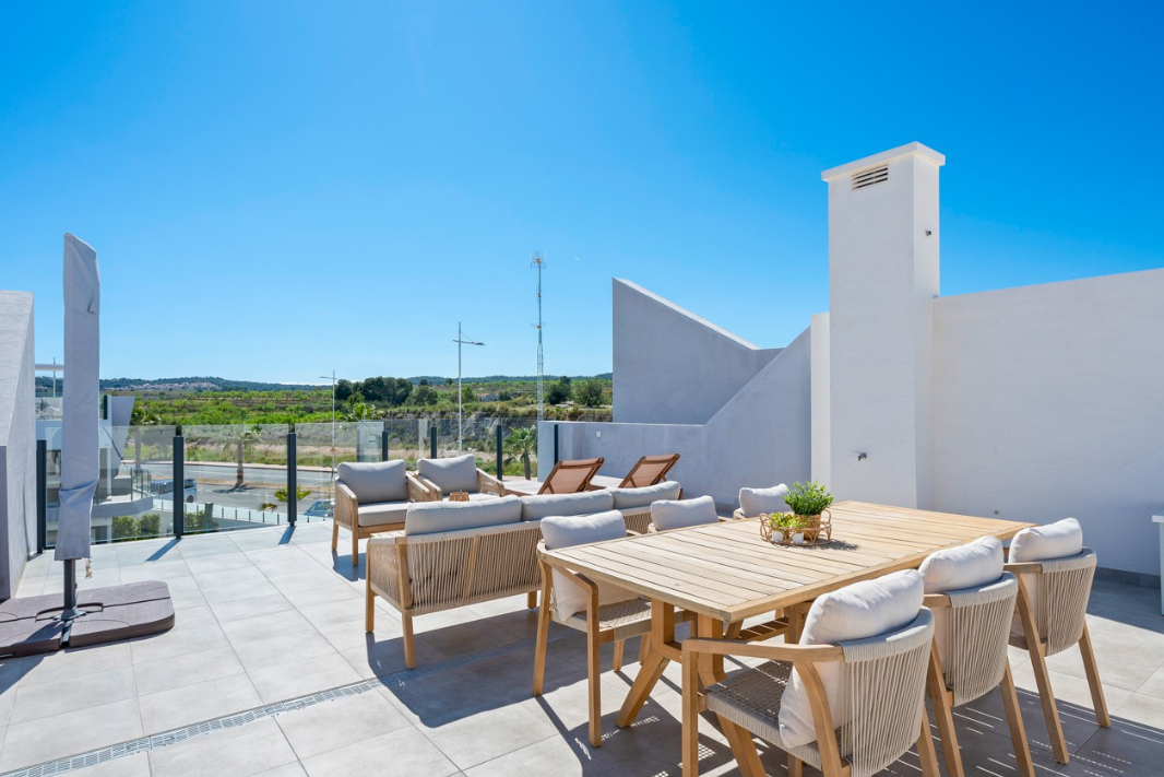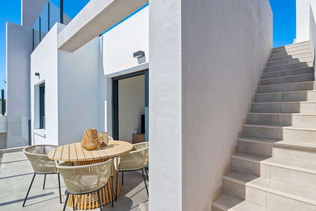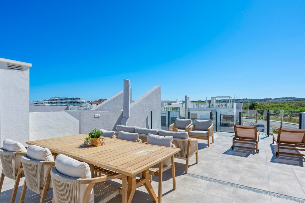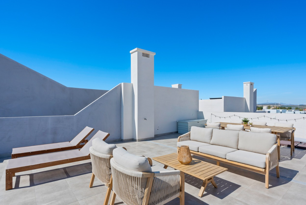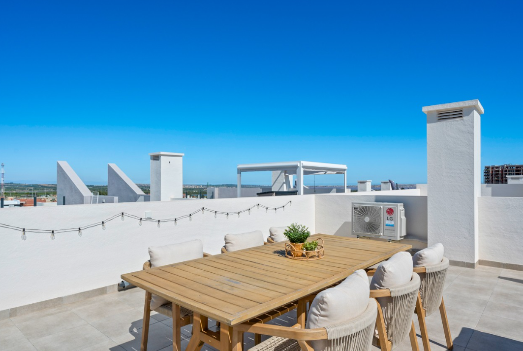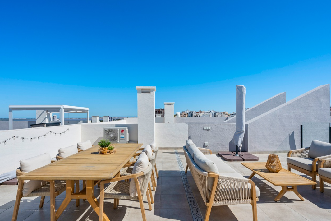 Na dachu znajduje się przestronne, prywatne solarium z imponującym widokiem na tereny naturalne oraz słynne różowe jezioro – Laguna Salada de Torrevieja.
