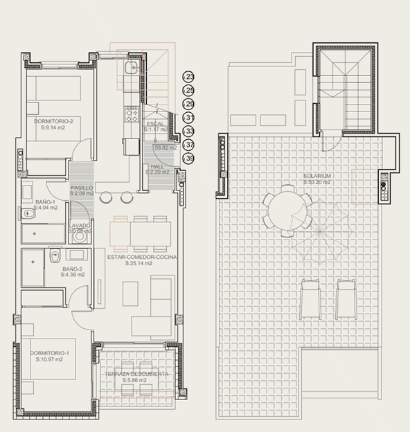 Każdy apartament ma otwarty plan, który płynnie łączy w pełni wyposażoną kuchnię z jasnym i przestronnym salonem, tworząc idealne miejsce do relaksu i spotkań towarzyskich. W każdym apartamencie znajdują się dwie eleganckie łazienki, a sypialnia główna z łazienką en-suite zapewnia dodatkowy komfort i wygodę. Zarówno salon, jak i sypialnia mają bezpośrednie wyjście na przestronny taras lub balkon, idealny do delektowania się śródziemnomorskim klimatem.