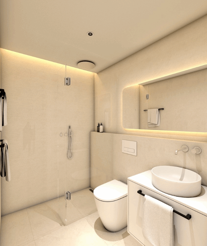 Apartamenty wyposażone są w sprzęt AGD, ogrzewanie podłogowe w salonie, kuchni i łazience, kabiny prysznicowe w łazience, oświetlenie wewnętrzne i zewnętrzne, preinstalowaną klimatyzację kanałową oraz system aerotermalny do podgrzewania wody.