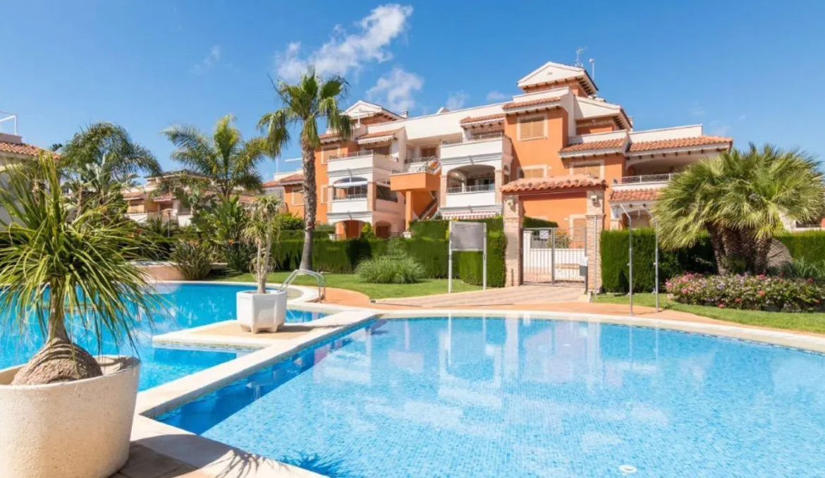 Urbanizacja mieszkalna oferuje duży basen wspólny z jacuzzi, atrakcyjne tereny zielone, strefę relaksu z parasolami oraz “klub społeczny”, co czyni ją jedną z bardziej cenionych wspólnot mieszkaniowych w okolicy.