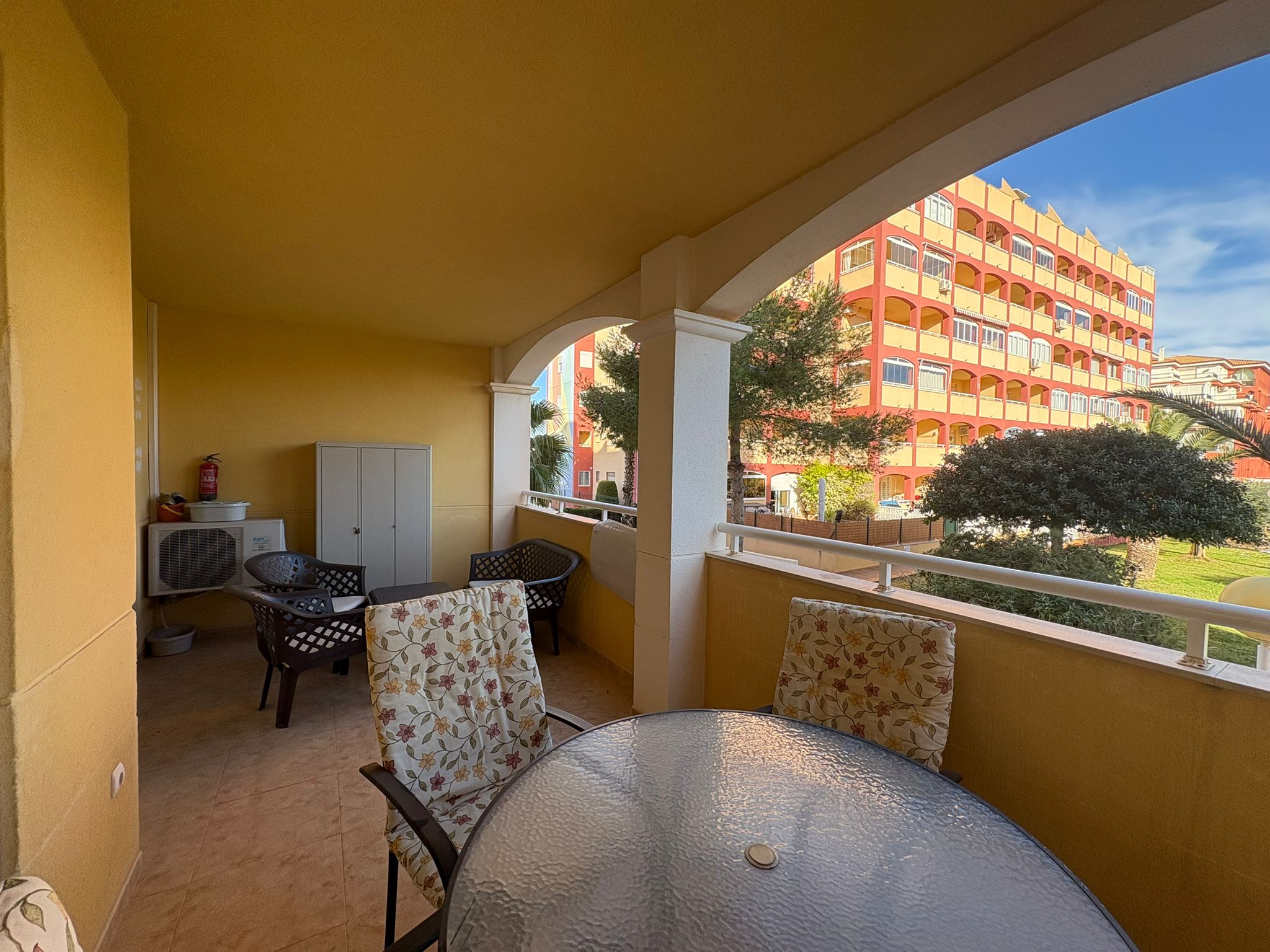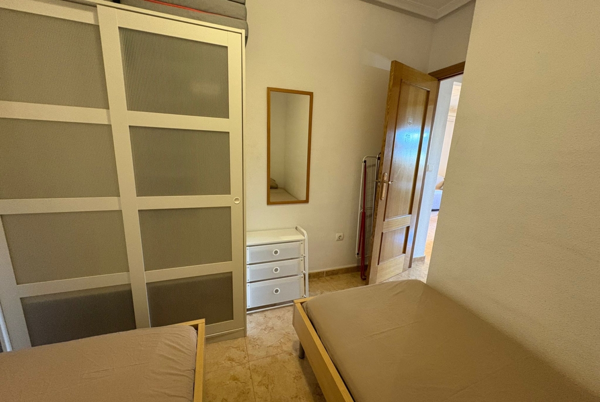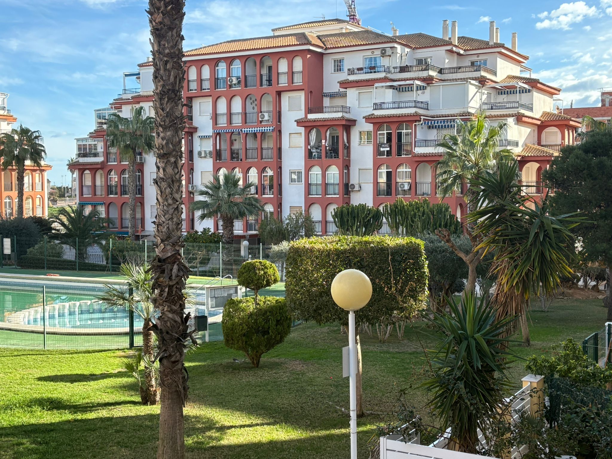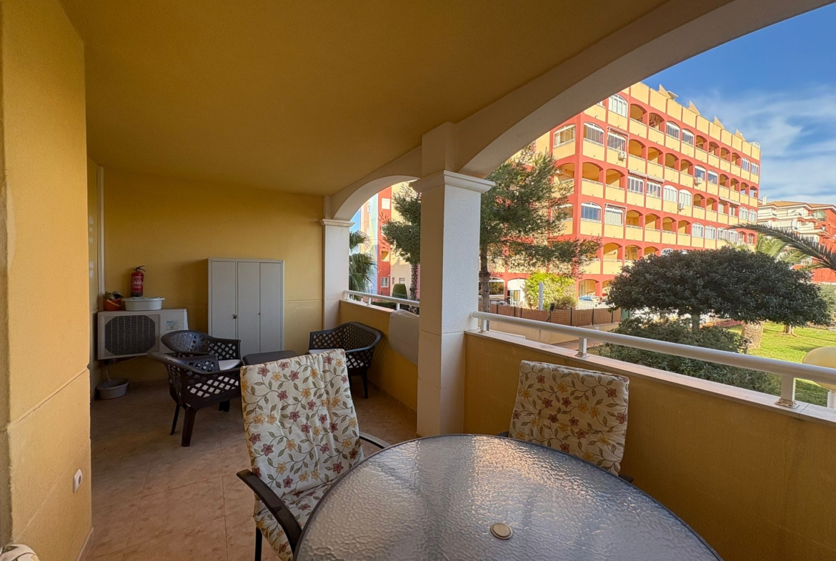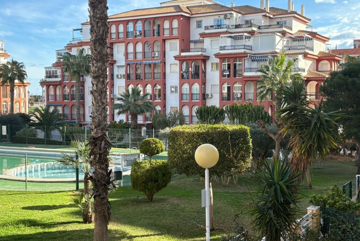 Apartament znajduje się na zamkniętym, zadbanym kompleksie w popularnej dzielnicy La Mata, z pięknym ogrodem i basenem, zapewniającym spokój, prywatność i wakacyjny klimat przez cały rok.