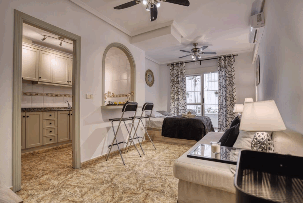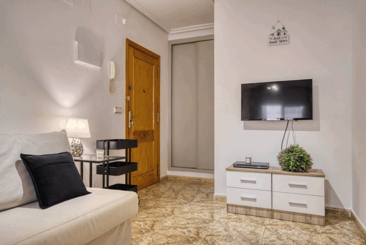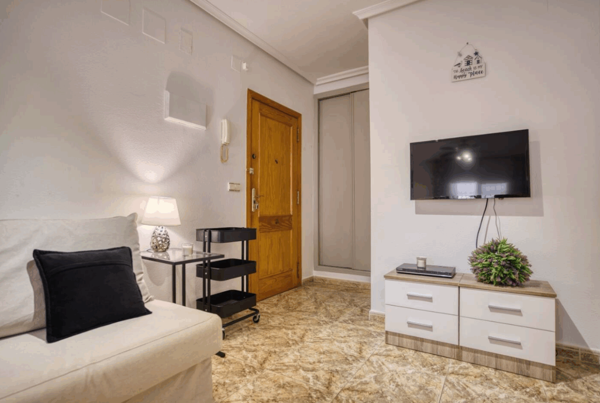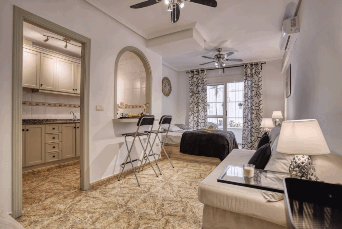 Przytulne, w pełni odnowione studio na sprzedaż, zaledwie 2 minuty spacerem od słynnej plaży Los Locos w Torrevieja.