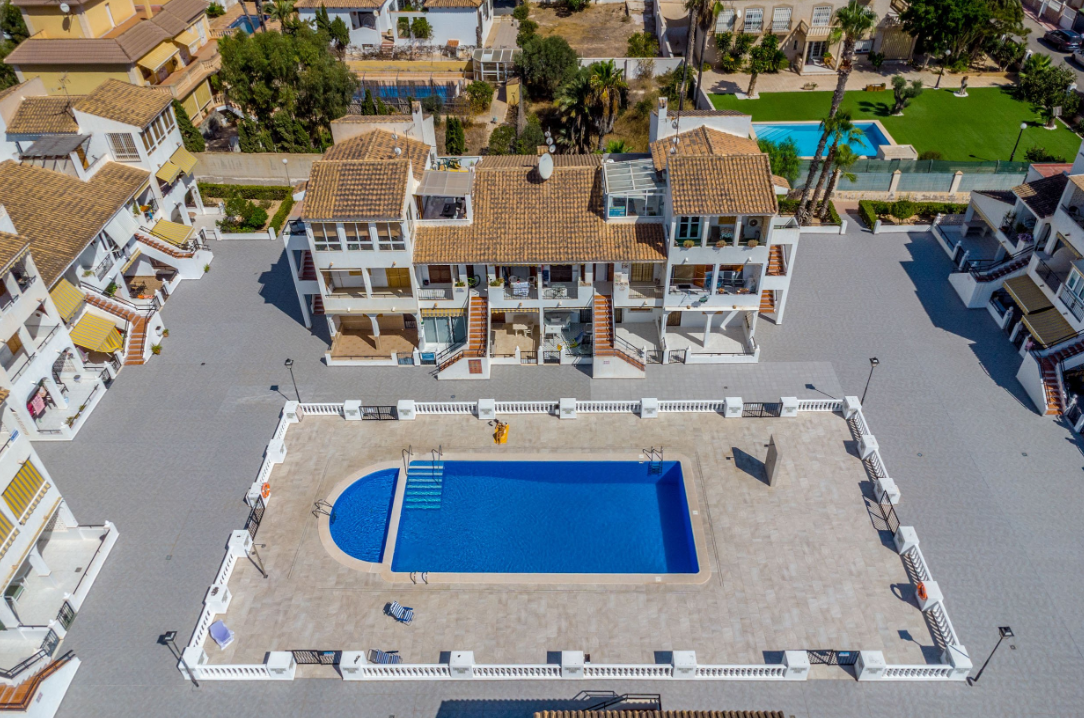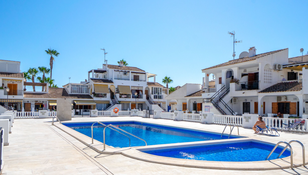 Uroczy bungalow na parterze o powierzchni 45 m², położony w spokojnej, zamkniętej urbanizacji z basenem komunalnym w Torrevieja.