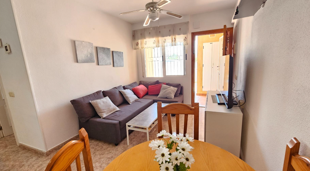 Na sprzedaż przytulny bungalow o powierzchni 44 m², położony w spokojnej dzielnicy Torreblanca (Torrevieja) – zaledwie kilka minut spacerem od jednej z najpiękniejszych plaż Costa Blanca – La Mata!