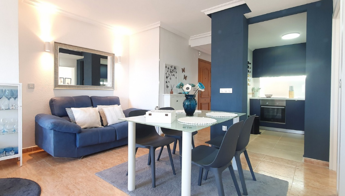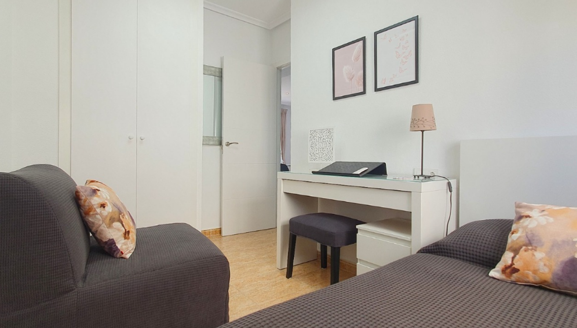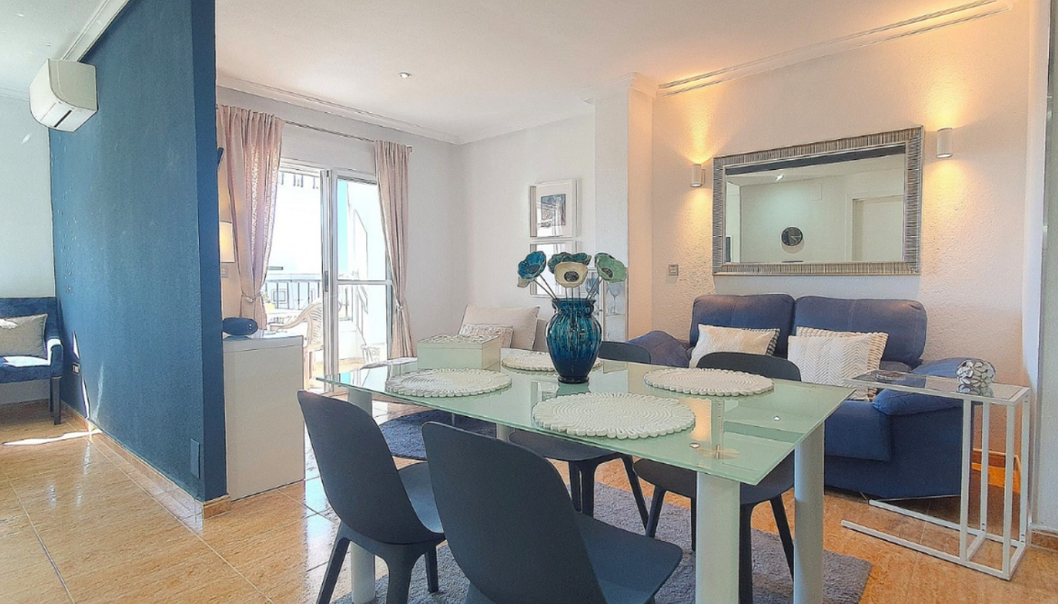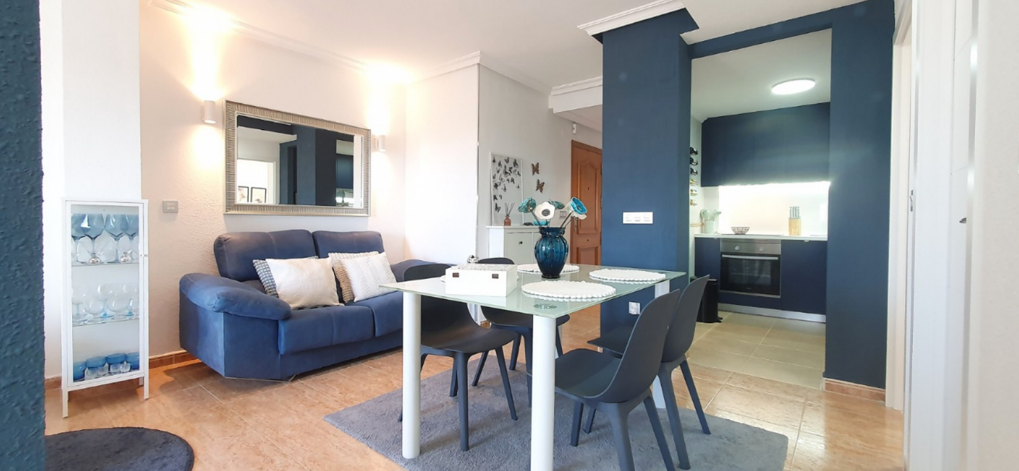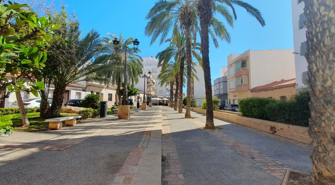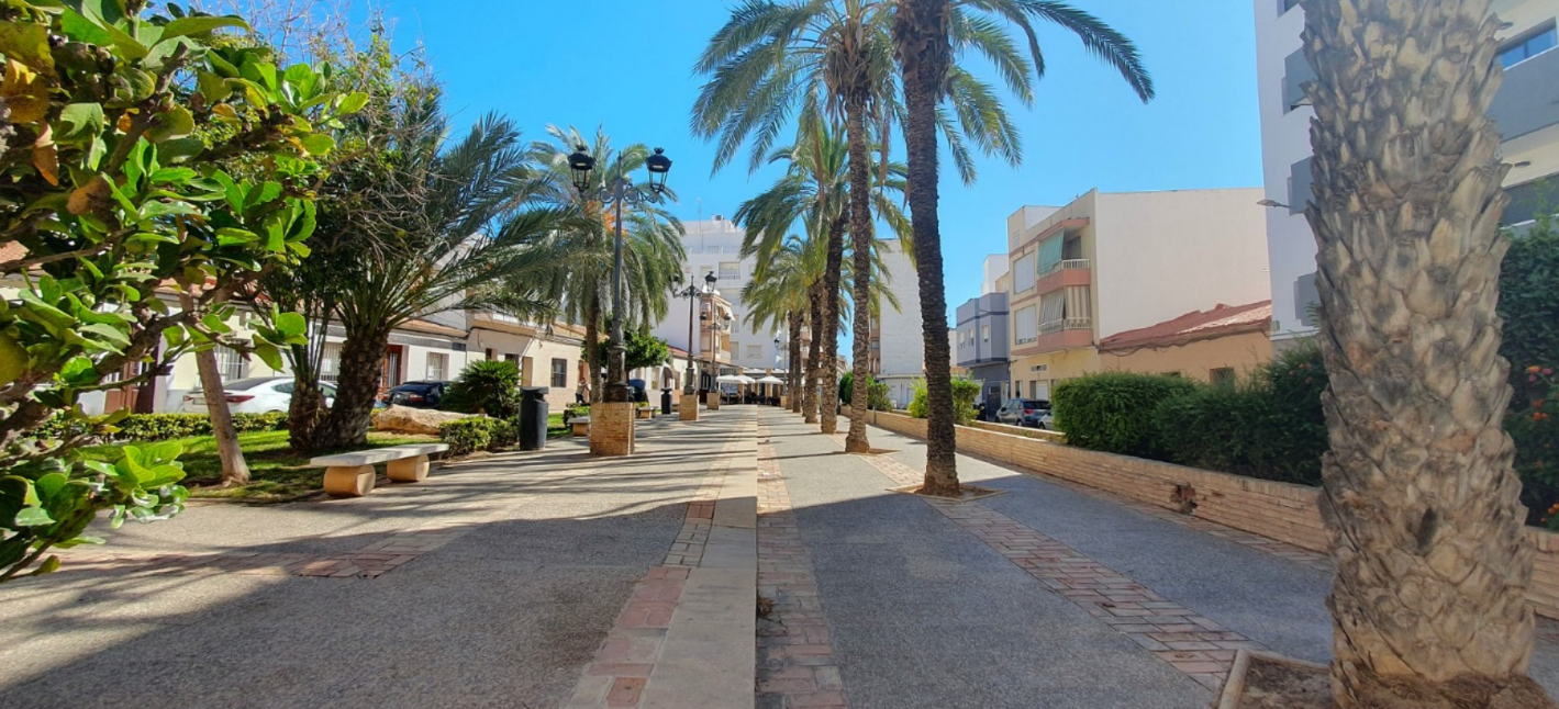 Lokalizacja zapewnia wyjątkową wygodę – sklepy, restauracje i inne udogodnienia znajdują się w bezpośrednim sąsiedztwie, zaledwie kilka kroków od nieruchomości. Odległość do morza wynosi ok. 600 metrów, do lotniska w Alicante ok. 49 km, a do pola golfowego ok. 6 km.