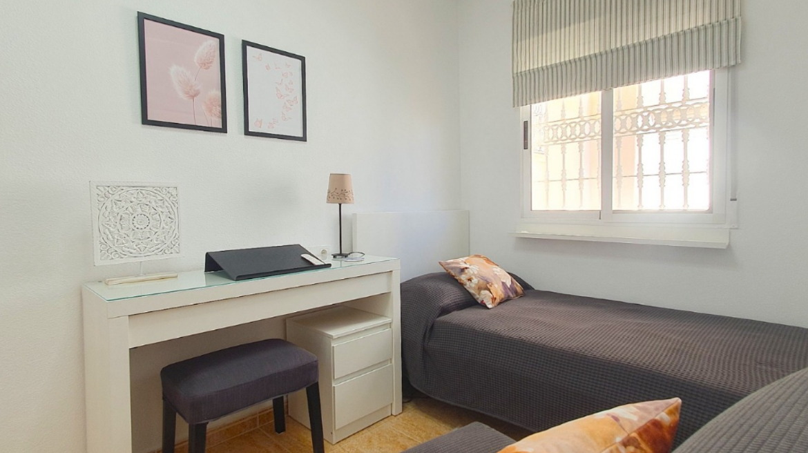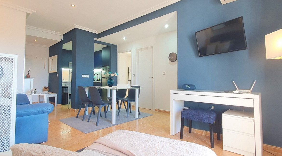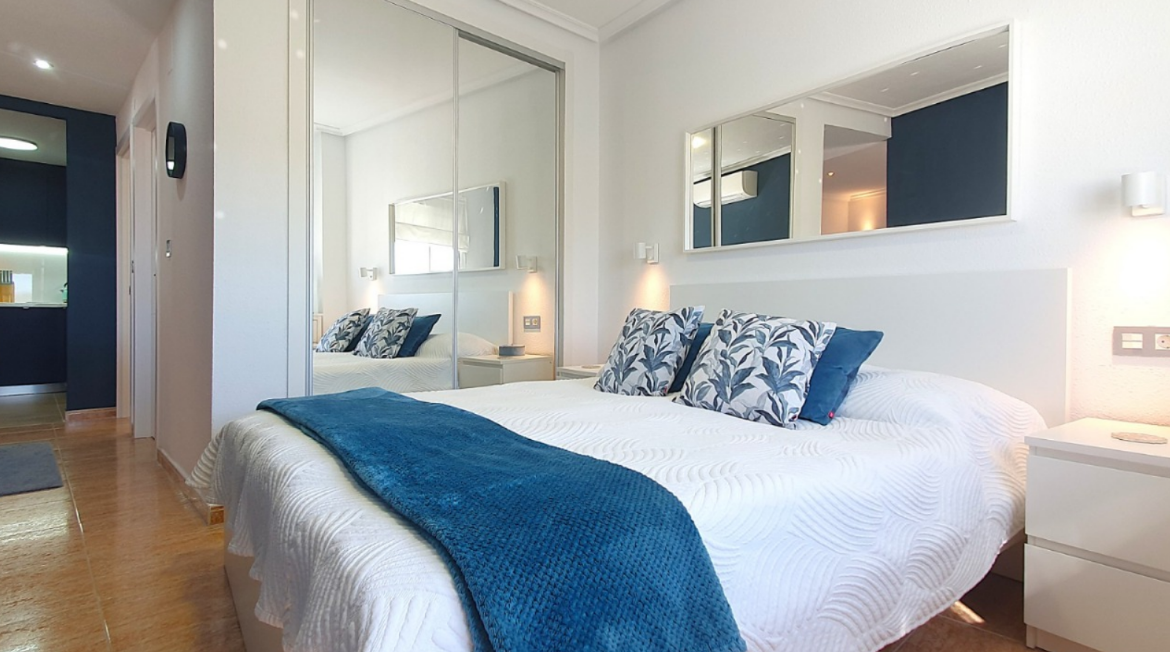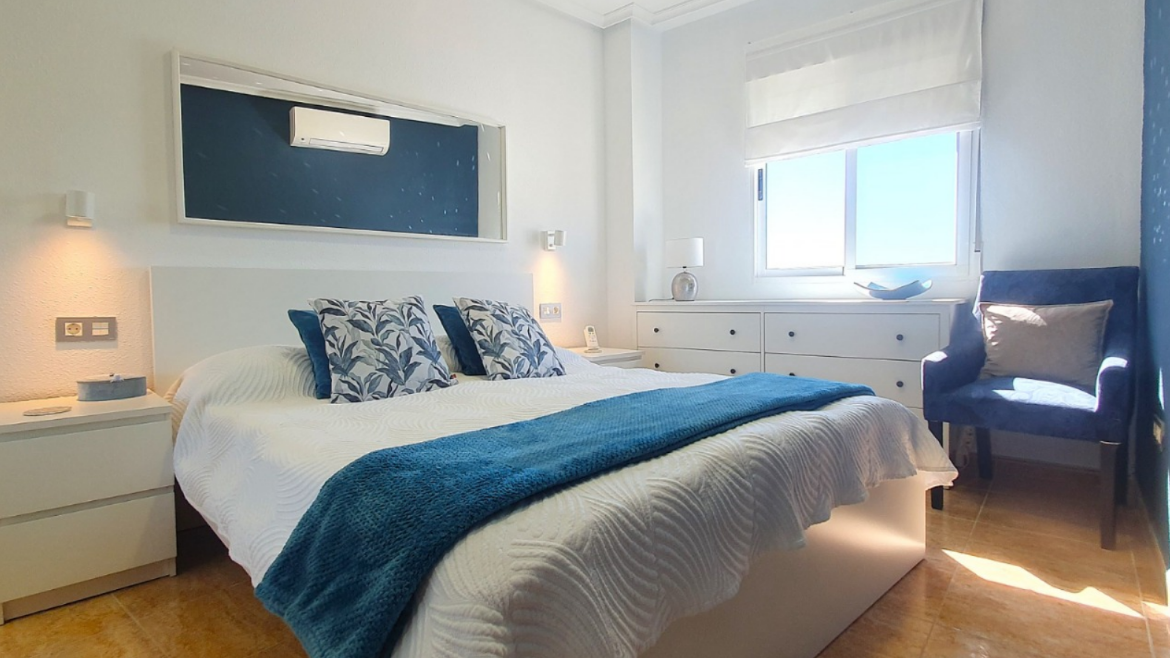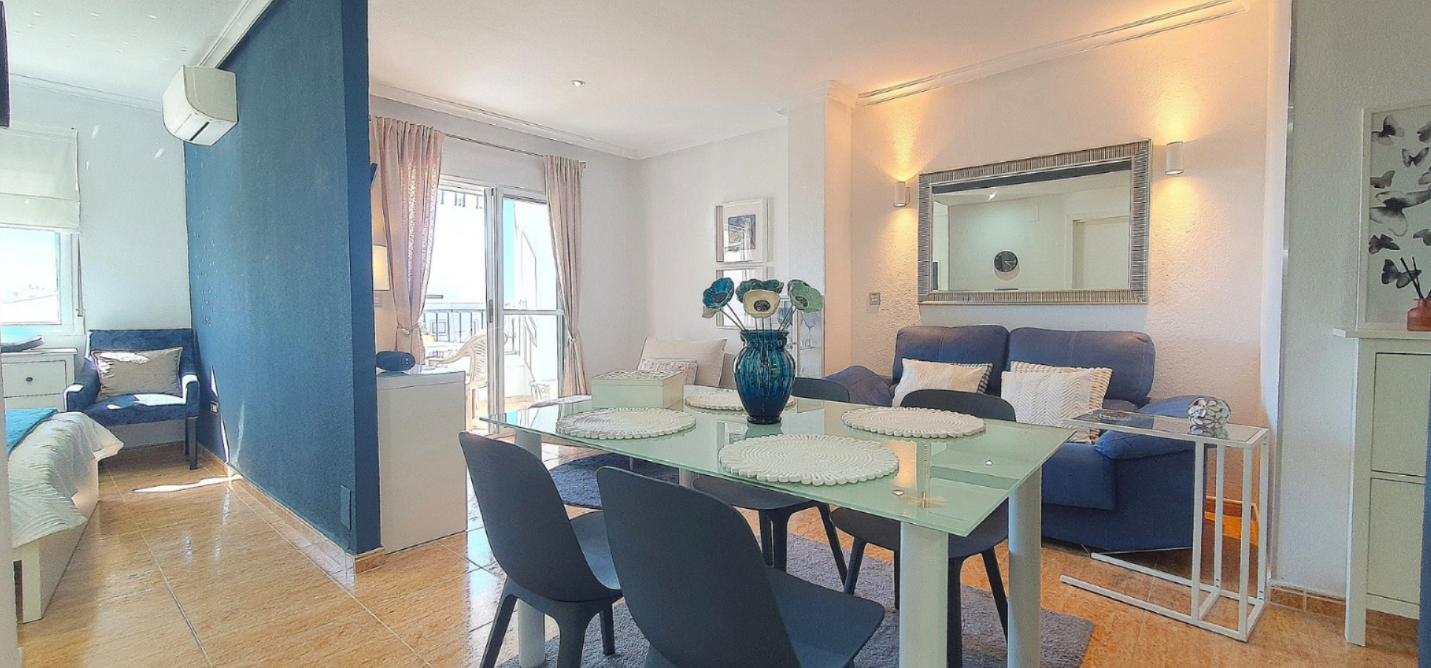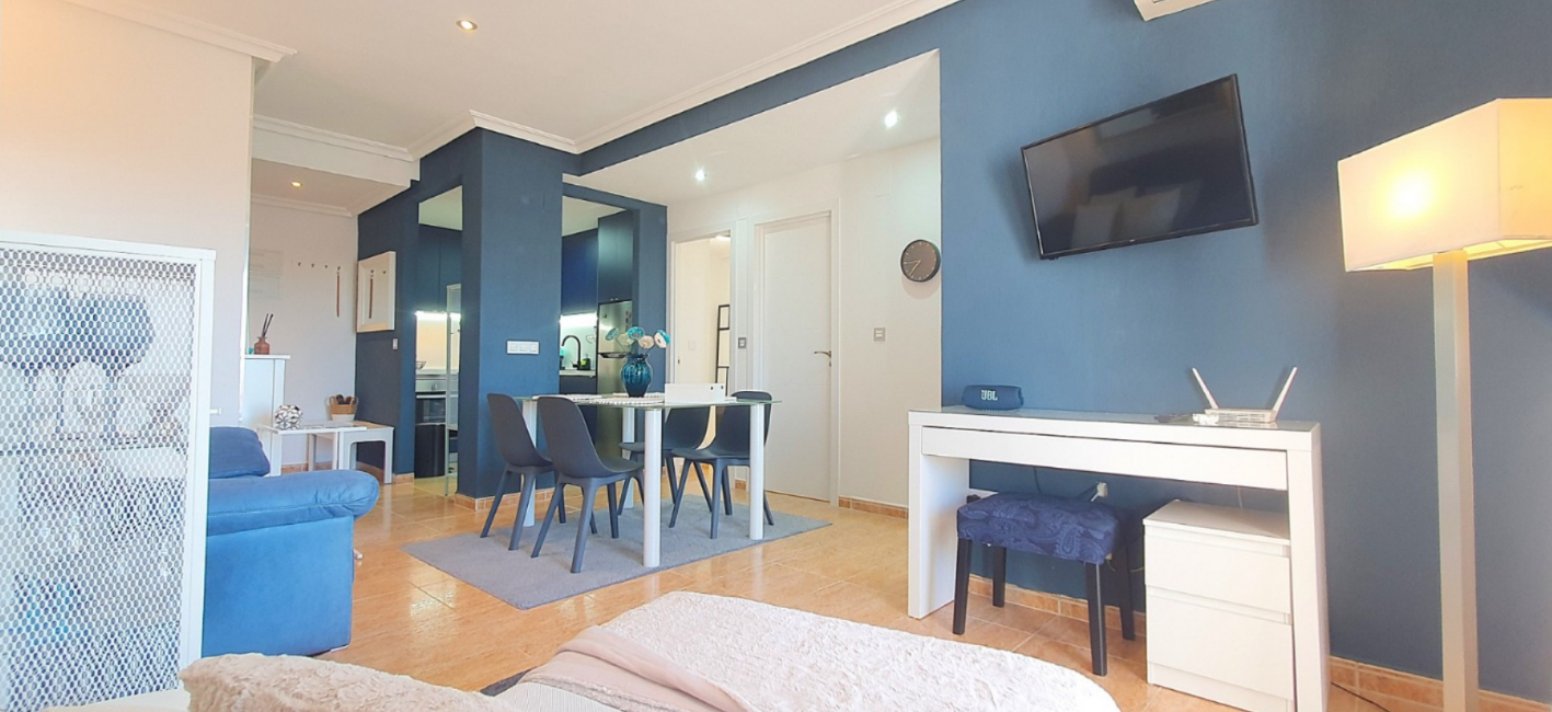 Lokalizacja zapewnia wyjątkową wygodę – sklepy, restauracje i inne udogodnienia znajdują się w bezpośrednim sąsiedztwie, zaledwie kilka kroków od nieruchomości. Odległość do morza wynosi ok. 600 metrów, do lotniska w Alicante ok. 49 km, a do pola golfowego ok. 6 km.