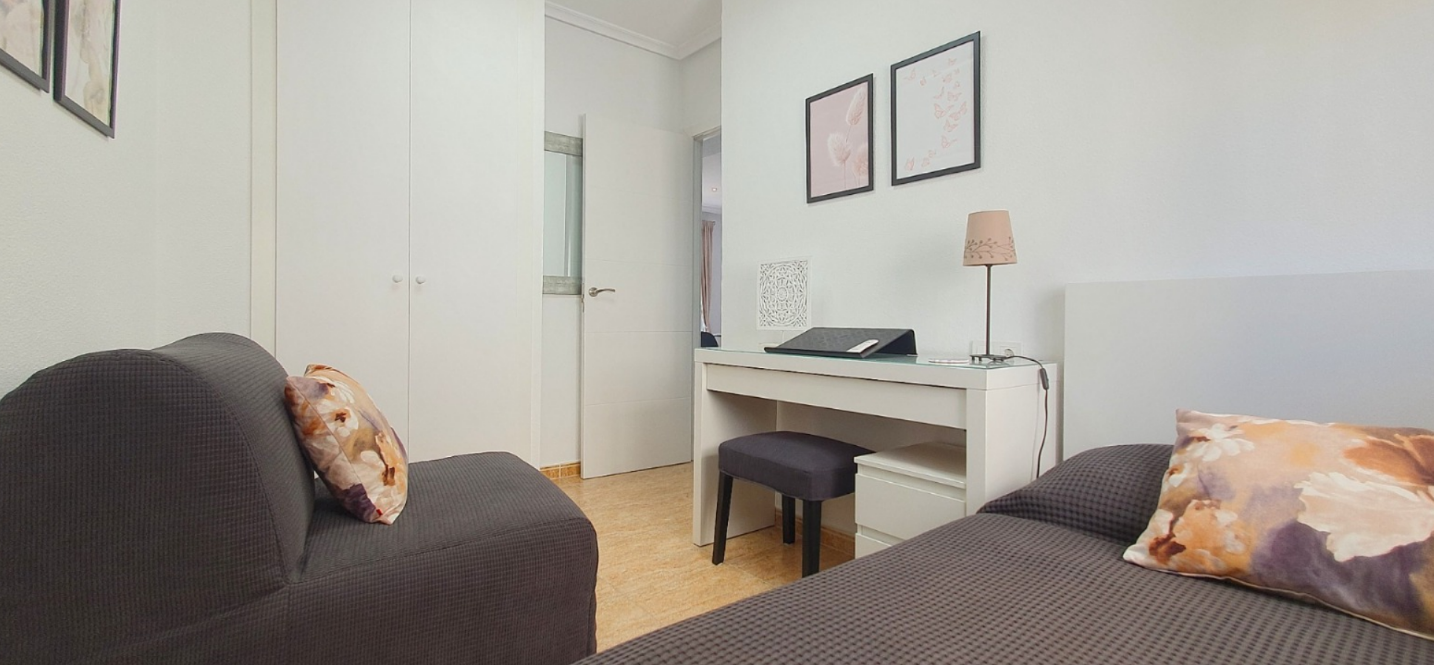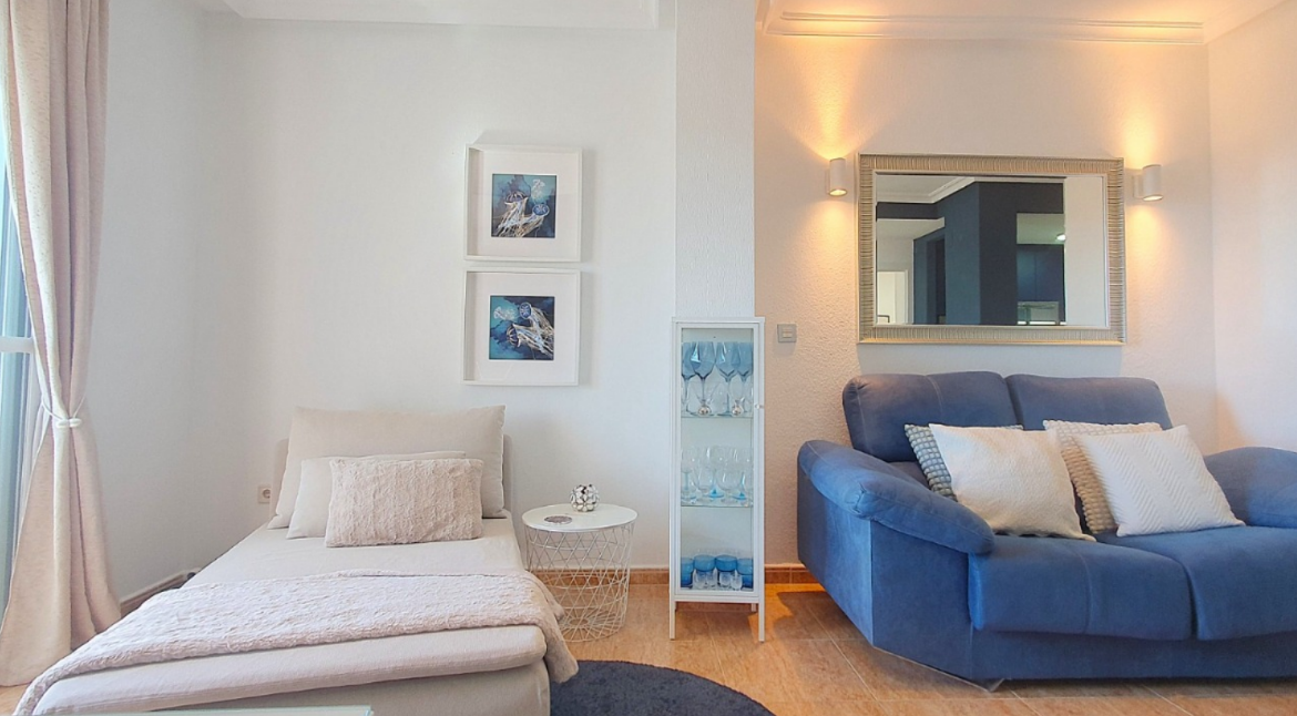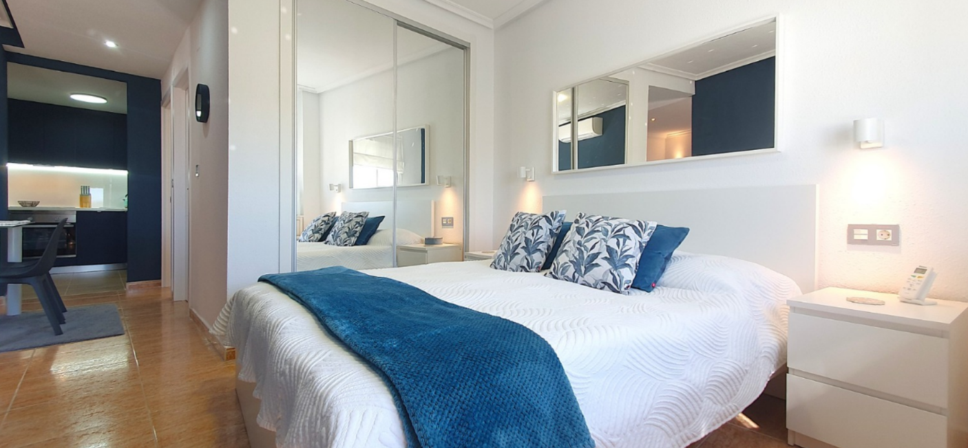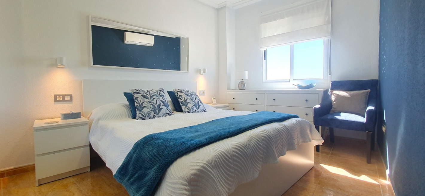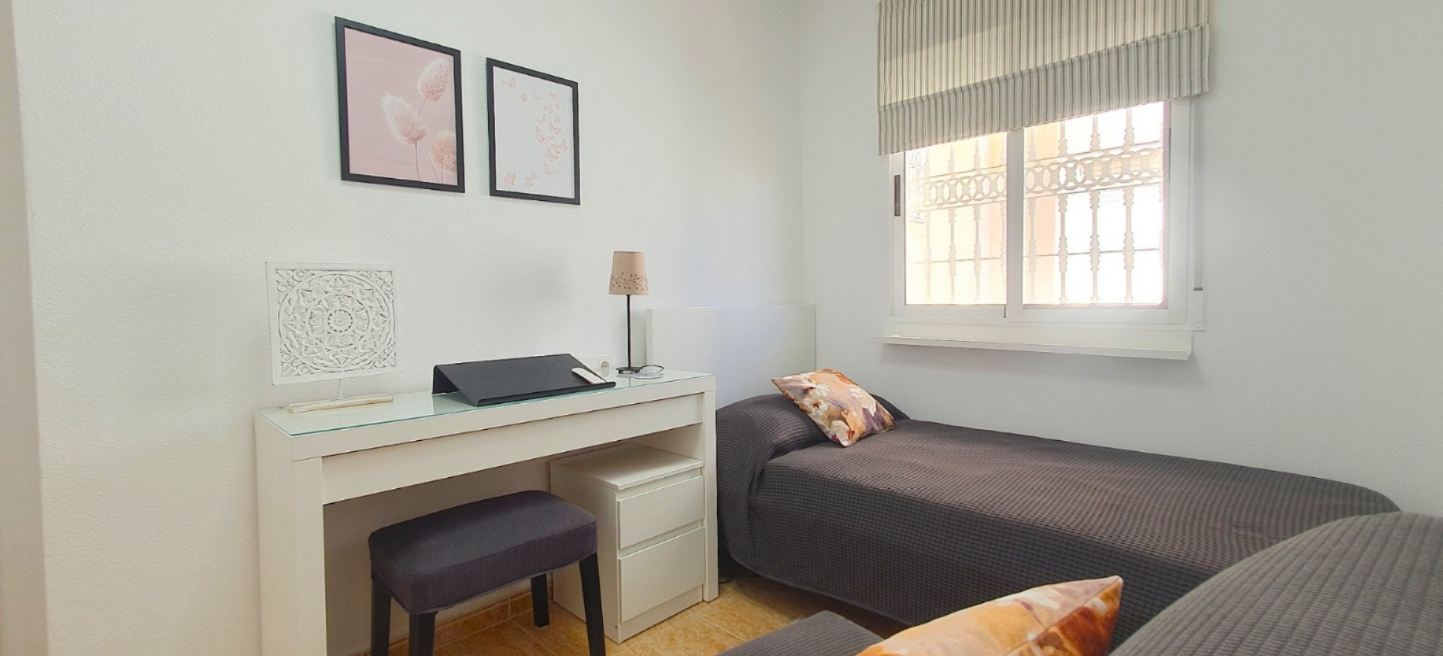 Lokalizacja zapewnia wyjątkową wygodę – sklepy, restauracje i inne udogodnienia znajdują się w bezpośrednim sąsiedztwie, zaledwie kilka kroków od nieruchomości. Odległość do morza wynosi ok. 600 metrów, do lotniska w Alicante ok. 49 km, a do pola golfowego ok. 6 km.