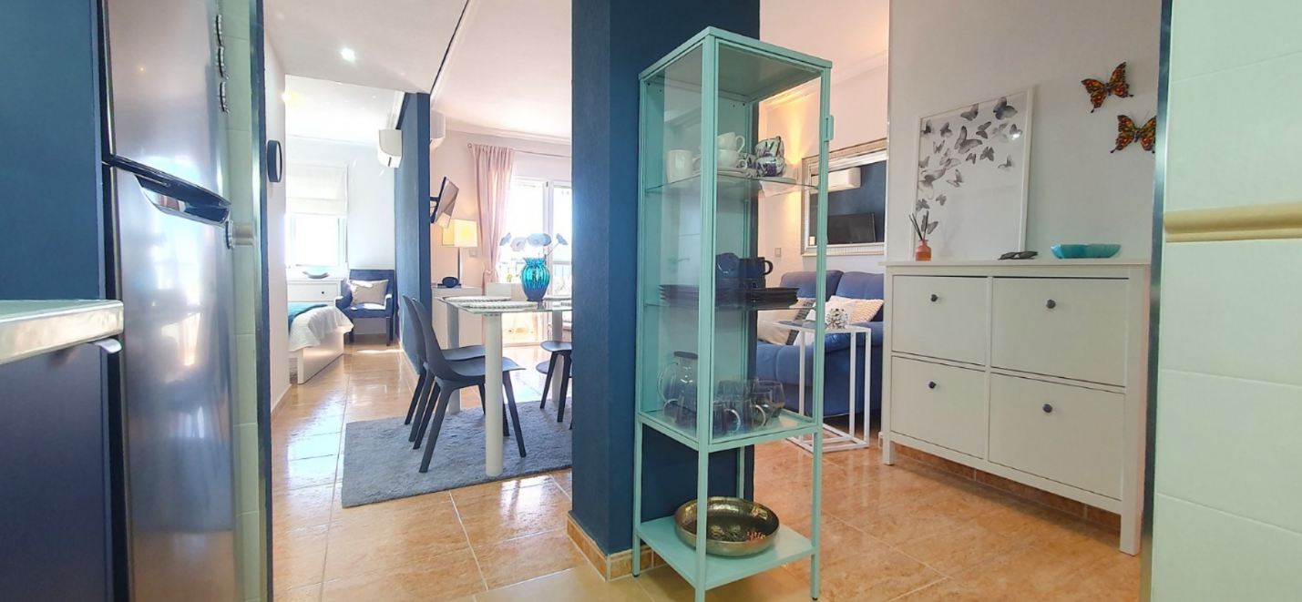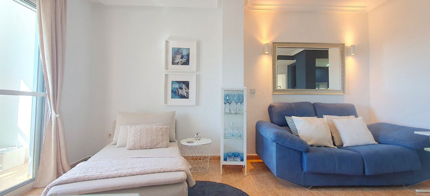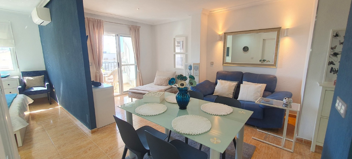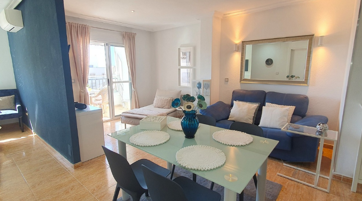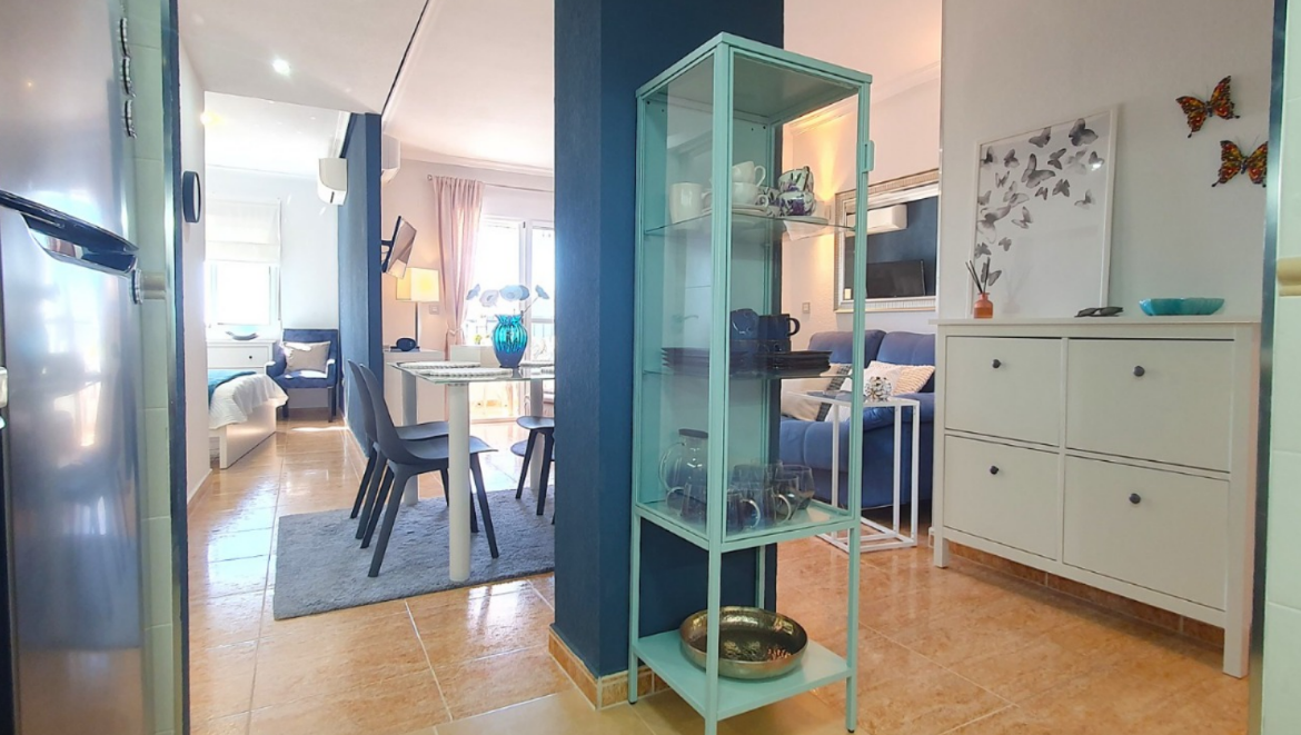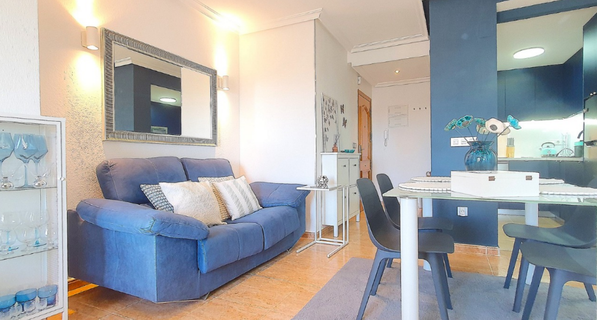 Lokalizacja zapewnia wyjątkową wygodę – sklepy, restauracje i inne udogodnienia znajdują się w bezpośrednim sąsiedztwie, zaledwie kilka kroków od nieruchomości. Odległość do morza wynosi ok. 600 metrów, do lotniska w Alicante ok. 49 km, a do pola golfowego ok. 6 km.