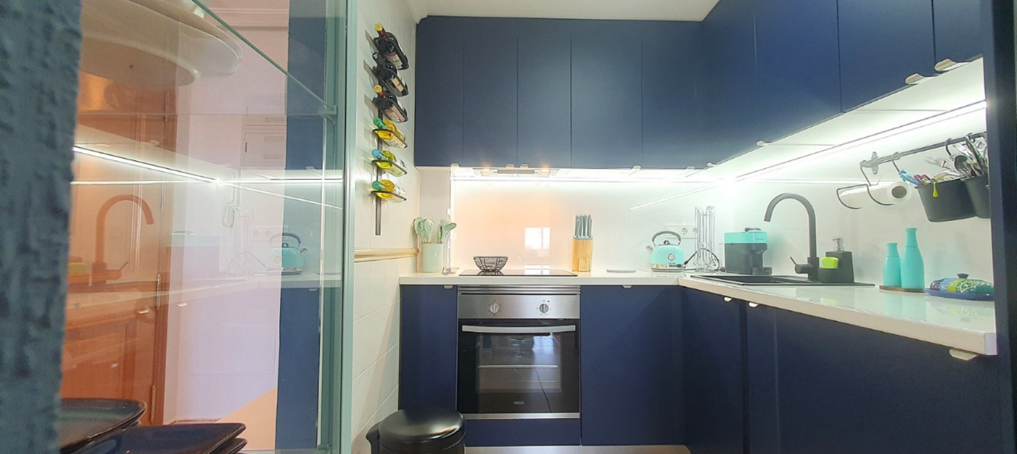 Układ mieszkania obejmuje dwie sypialnie z wbudowanymi szafami, łazienkę, salon z wyjściem na taras oraz w pełni wyposażoną kuchnię. Taras o powierzchni ok. 4 m² stanowi przyjemną przestrzeń do wypoczynku, z której rozciąga się widok na morze. Dzięki korzystnemu położeniu i dużym przeszkleniom wnętrza są jasne i komfortowe.