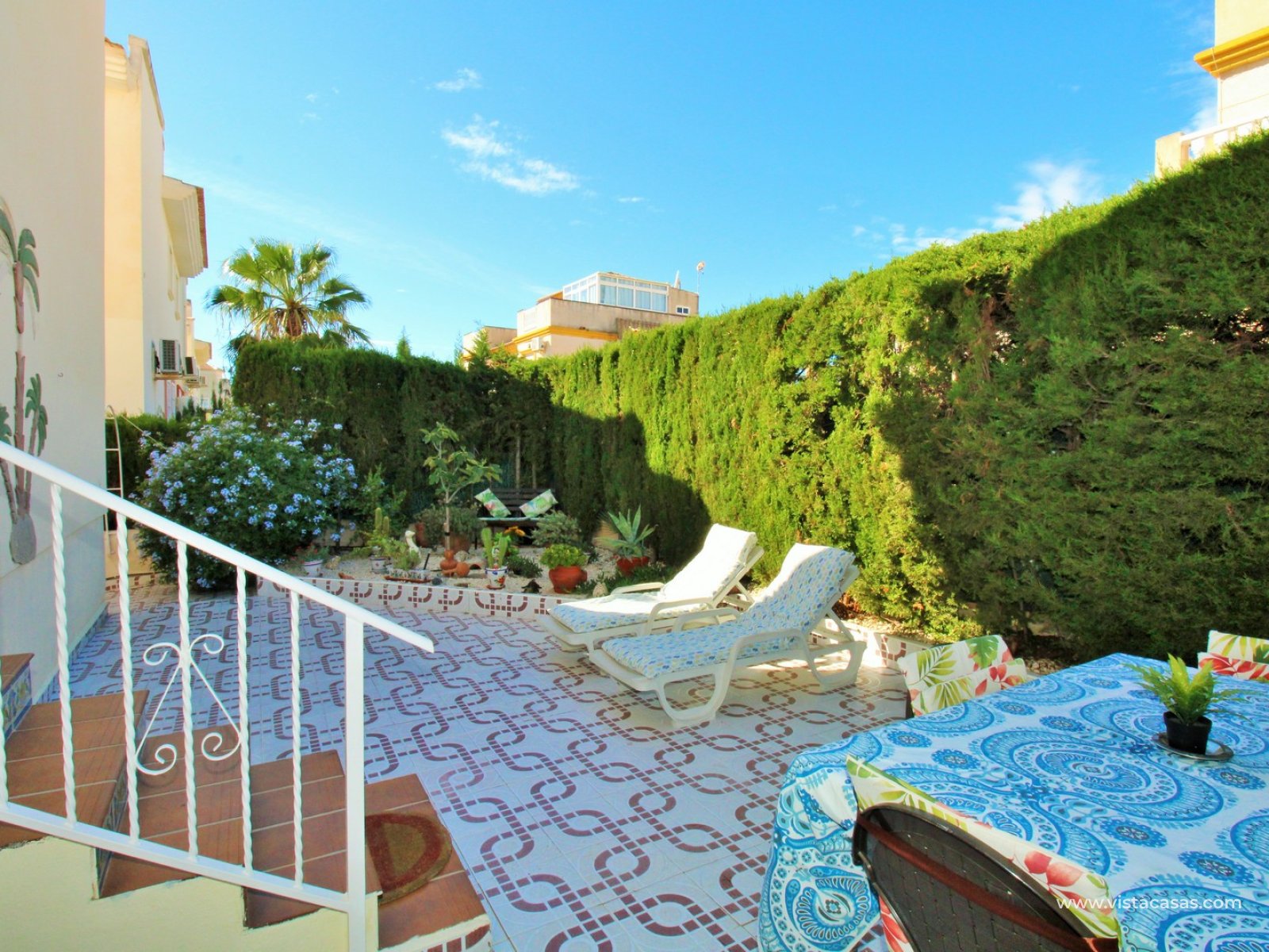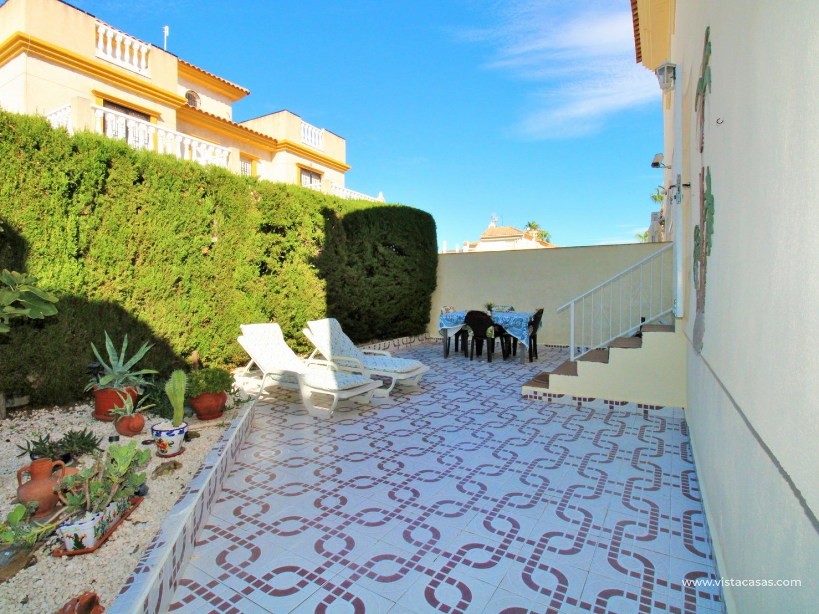 Lokalizacja jest wyjątkowo wygodna – w odległości spaceru znajdują się sklepy, restauracje i sobotni targ Playa Flamenca, a słynne centrum handlowe La Zenia Boulevard oraz plaże Orihuela Costa dzieli zaledwie kilka minut spaceru.