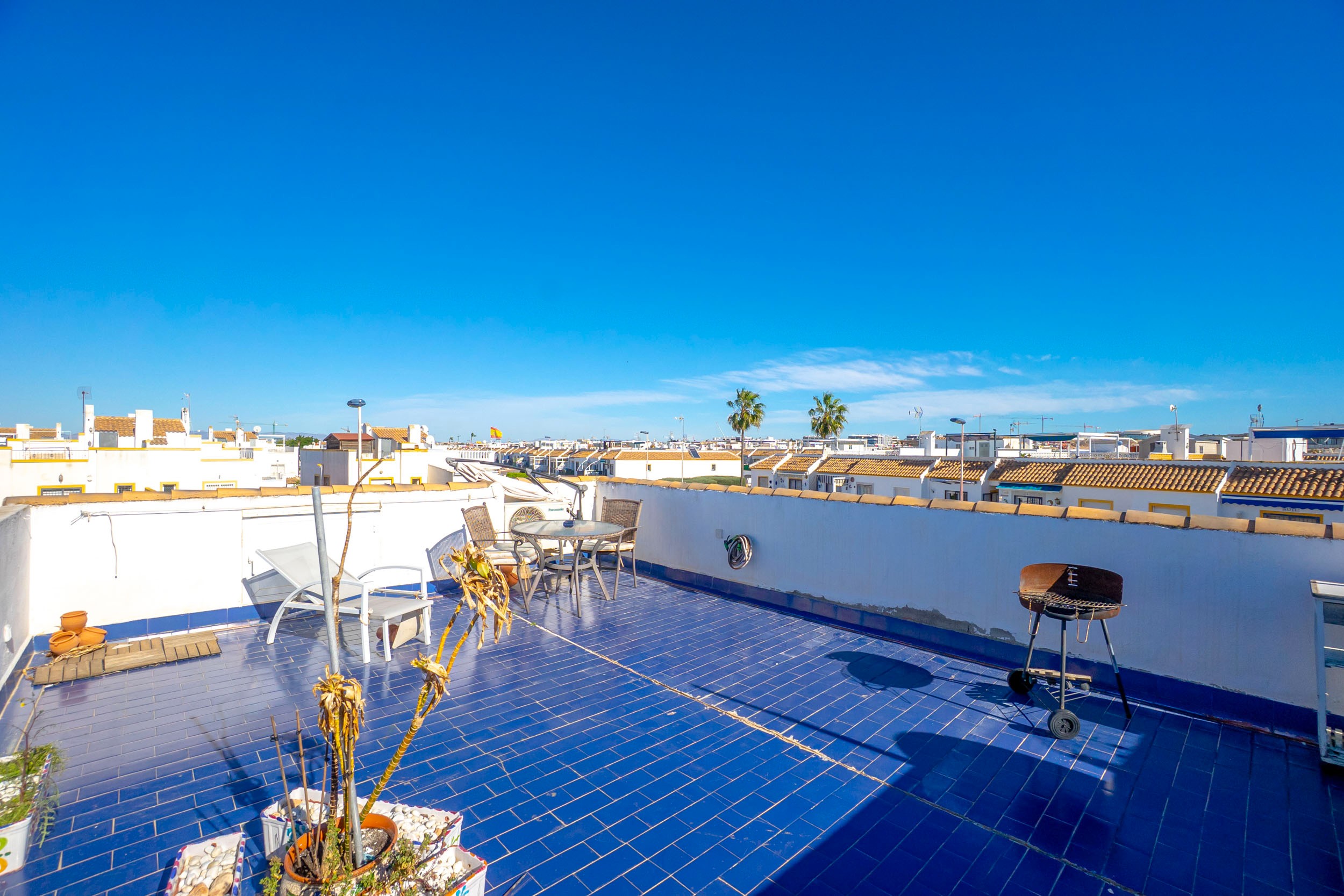 Ten bungalow na górnym piętrze został zaprojektowany tak, aby maksymalnie wykorzystać śródziemnomorskie słońce. Dzięki zachodniej orientacji możesz cieszyć się jasnymi wnętrzami przez cały dzień oraz spektakularnymi zachodami słońca.