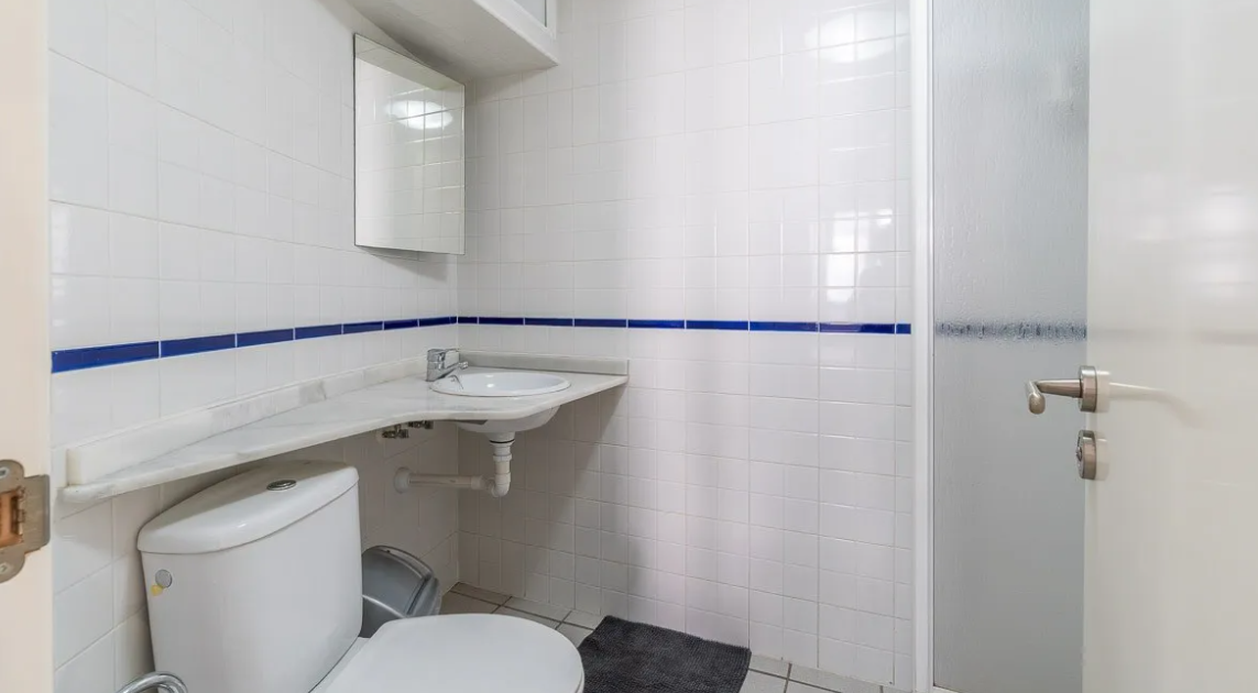Apartament o powierzchni 60 m² składa się z dwóch sypialni i dwóch łazienek, oferując wygodny układ dla rodziny lub gości.