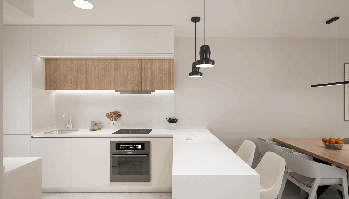 Każdy dom został zaprojektowany z myślą o funkcjonalności i wygodzie. Nieruchomość zostanie oddana do użytku z w pełni wykończonymi łazienkami wraz z ogrzewaniem podłogowym, zabudowaną kuchnią wyposażoną w sprzęt AGD (piekarnik, płyta grzewcza, okap, lodówka, zmywarka, mikrofalówka, pralką), a także z pojemnymi szafami wnękowymi w sypialniach oraz przygotowaną instalacją pod klimatyzację. Dodatkowo tarasy i ogrody wyposażono w oświetlenie zewnętrzne, a w bungalowach i na dachowych solariach znajdują się prysznice z ciepłą i zimną wodą.