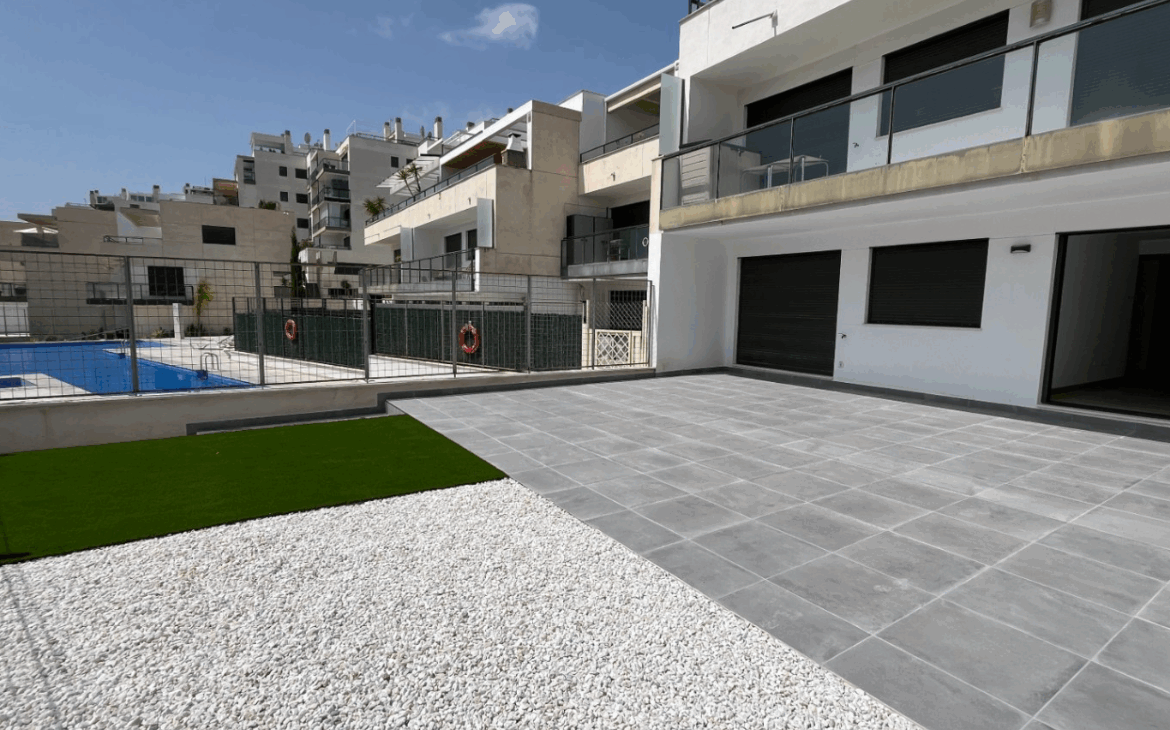 Prawdziwą ozdobą nieruchomości jest prywatny ogród o powierzchni 104 m², zlokalizowany tuż przy wspólnym basenie. To idealna przestrzeń, którą można zaaranżować według własnych potrzeb – stworzyć taras wypoczynkowy, ogród z roślinami śródziemnomorskimi lub niewielki basen. Dodatkowym atutem jest planowany system podgrzewania wody w basenie, który umożliwi korzystanie z niego przez cały rok.