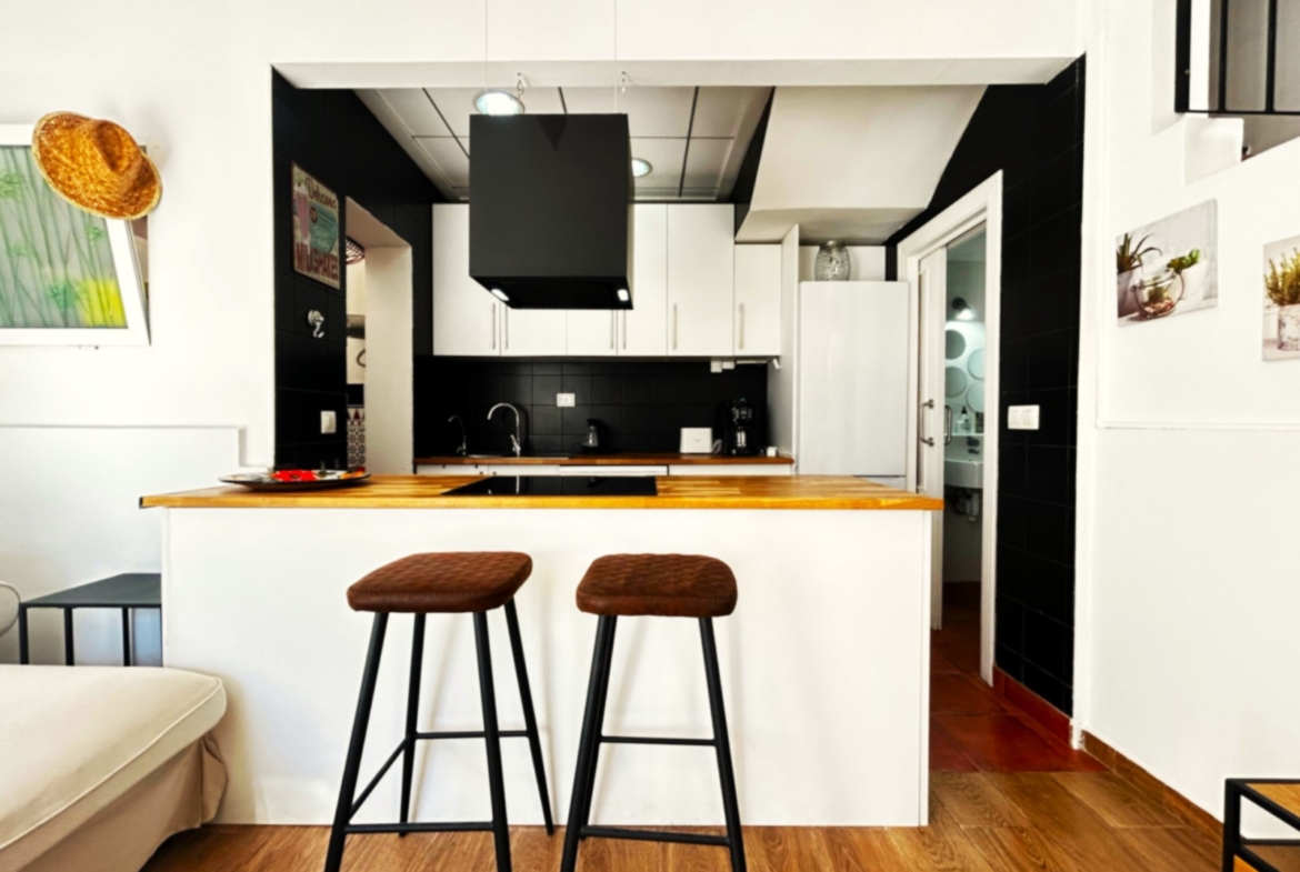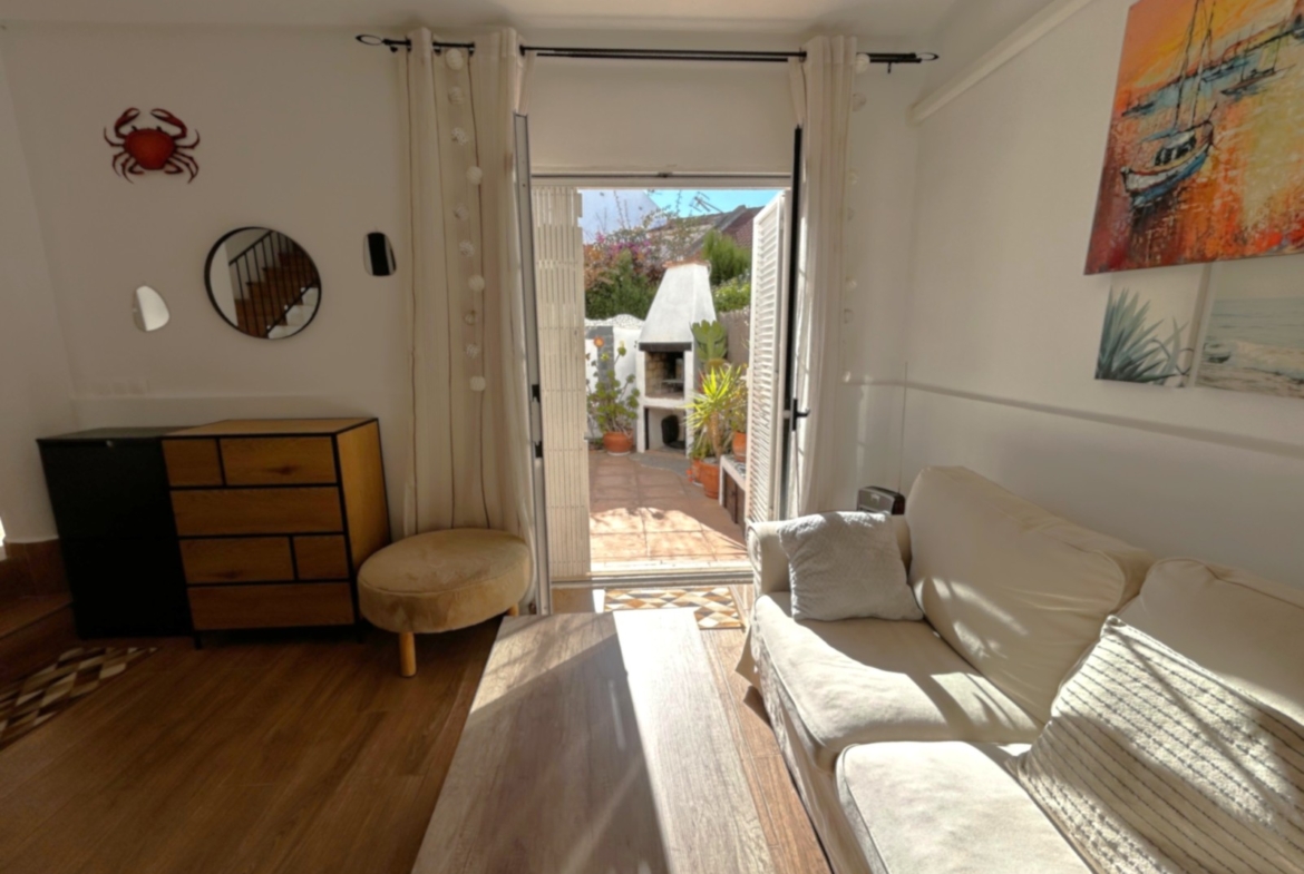 Urokliwy, utrzymany w hiszpańskim stylu szeregowiec zachwyca zadbanym wykończeniem i przyjazną atmosferą. Na parterze znajduje się prywatny ogród z miejscem do grillowania, idealny na ciepłe wieczory na świeżym powietrzu. Po wejściu do domu znajduje się jasny salon połączony z otwartą kuchnią, w której znajduje się praktyczne pomieszczenie gospodarcze. W pobliżu znajduje się również wygodna toaleta dla gości. Schody prowadzą na piętro, gdzie znajdują się dwie wygodne sypialnie i przestronna łazienka. Nieruchomość położona jest w zadbanym osiedlu ze wspólnymi basenami i dużym parkingiem dla mieszkańców. Południowa ekspozycja zapewnia mnóstwo naturalnego światła, a lokalizacja zaledwie 700 metrów od plaży Los Locos sprawia, że jest to idealne miejsce zarówno do relaksu, jak i codziennego życia.