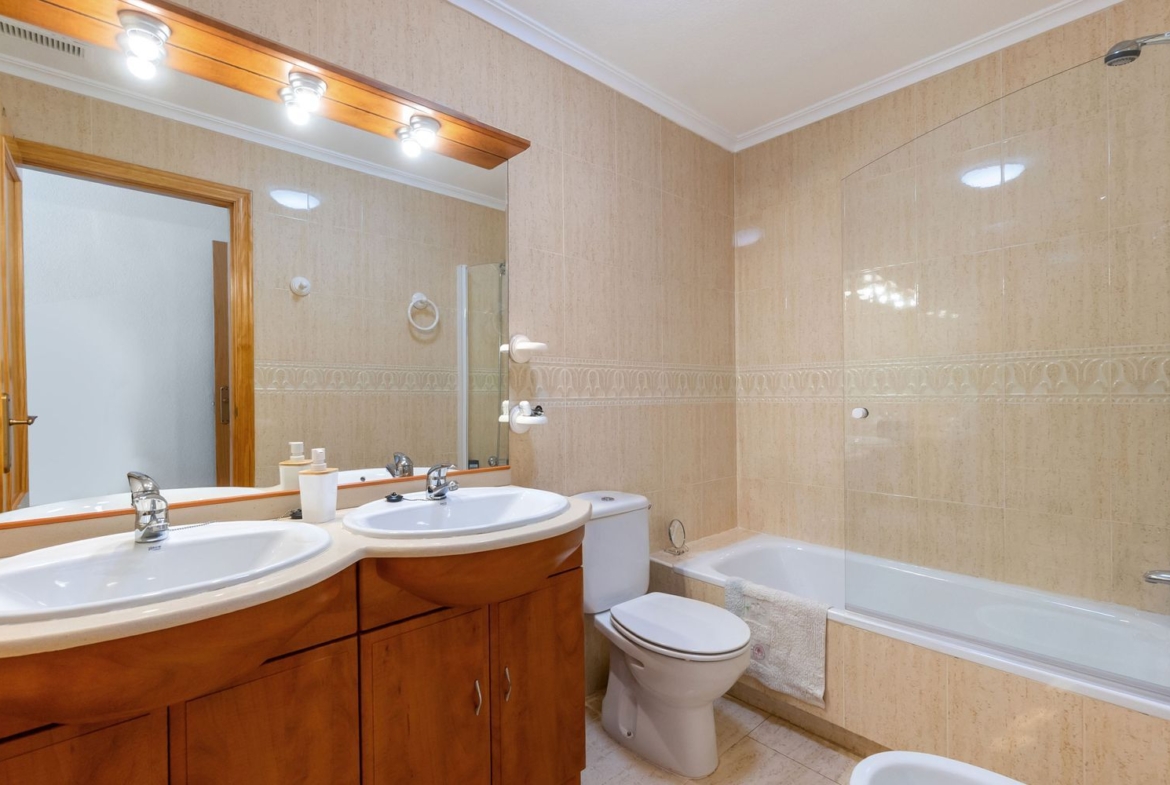 Apartament posiada dwie sypialnie, z czego główna sypialnia dysponuje prywatną łazienką typu en suite oraz klimatyzacją. Do dyspozycji są dwie pełne łazienki, co zapewnia komfort zarówno mieszkańcom, jak i gościom. Dodatkowo nieruchomość wyposażona jest w wbudowane szafy, zwiększające funkcjonalność przestrzeni.