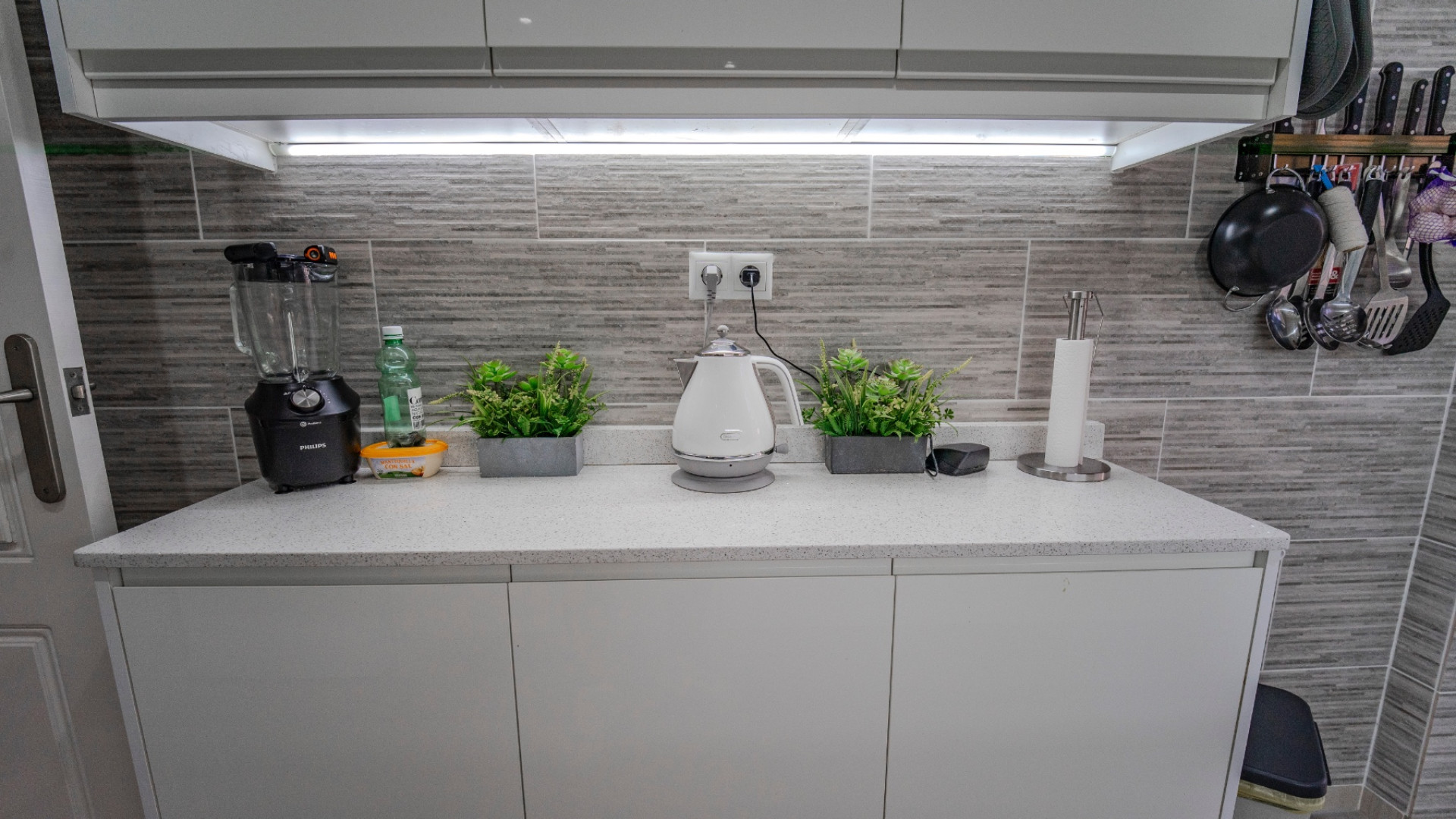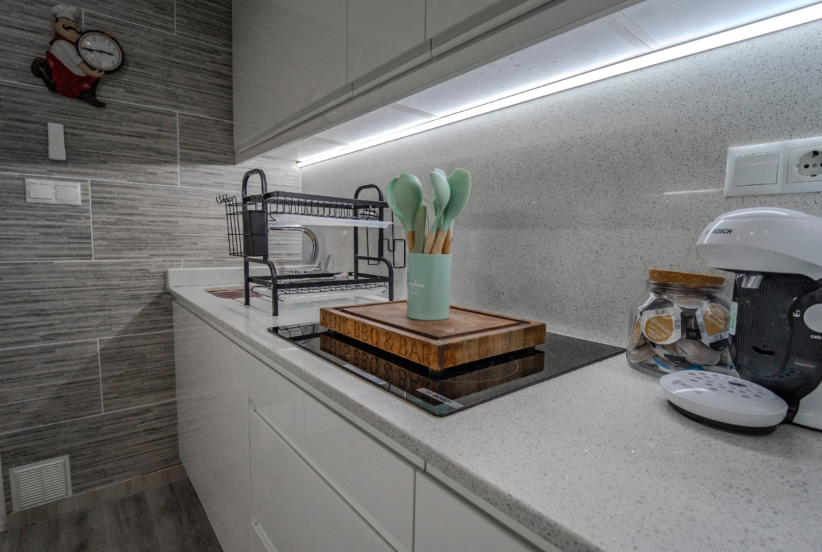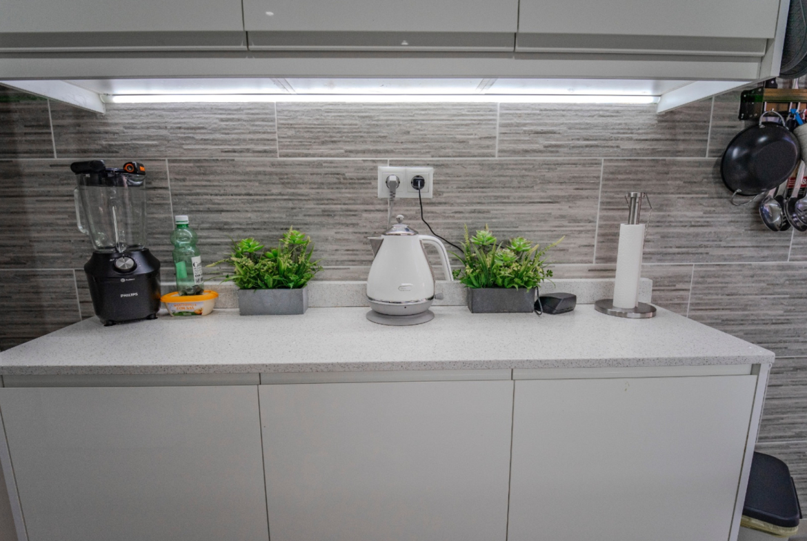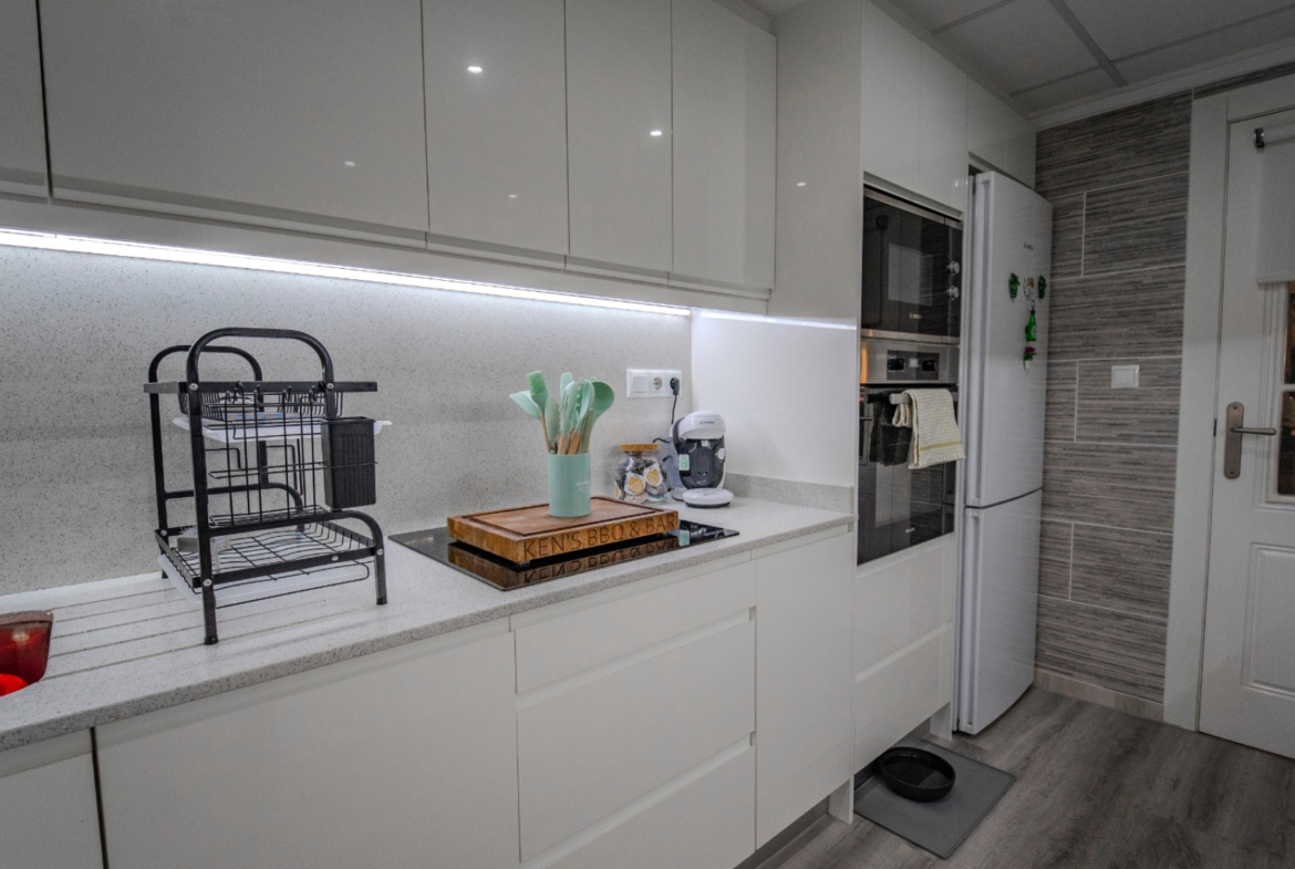 Kuchnia została całkowicie odnowiona i zaprojektowana w nowoczesnym stylu, z dużą ilością miejsca do przechowywania i pracy. Dodatkowym atutem jest letnia kuchnia na zewnątrz z wbudowanym grillem, idealna do spotkań towarzyskich i korzystania z klimatu Costa Blanca przez większą część roku.