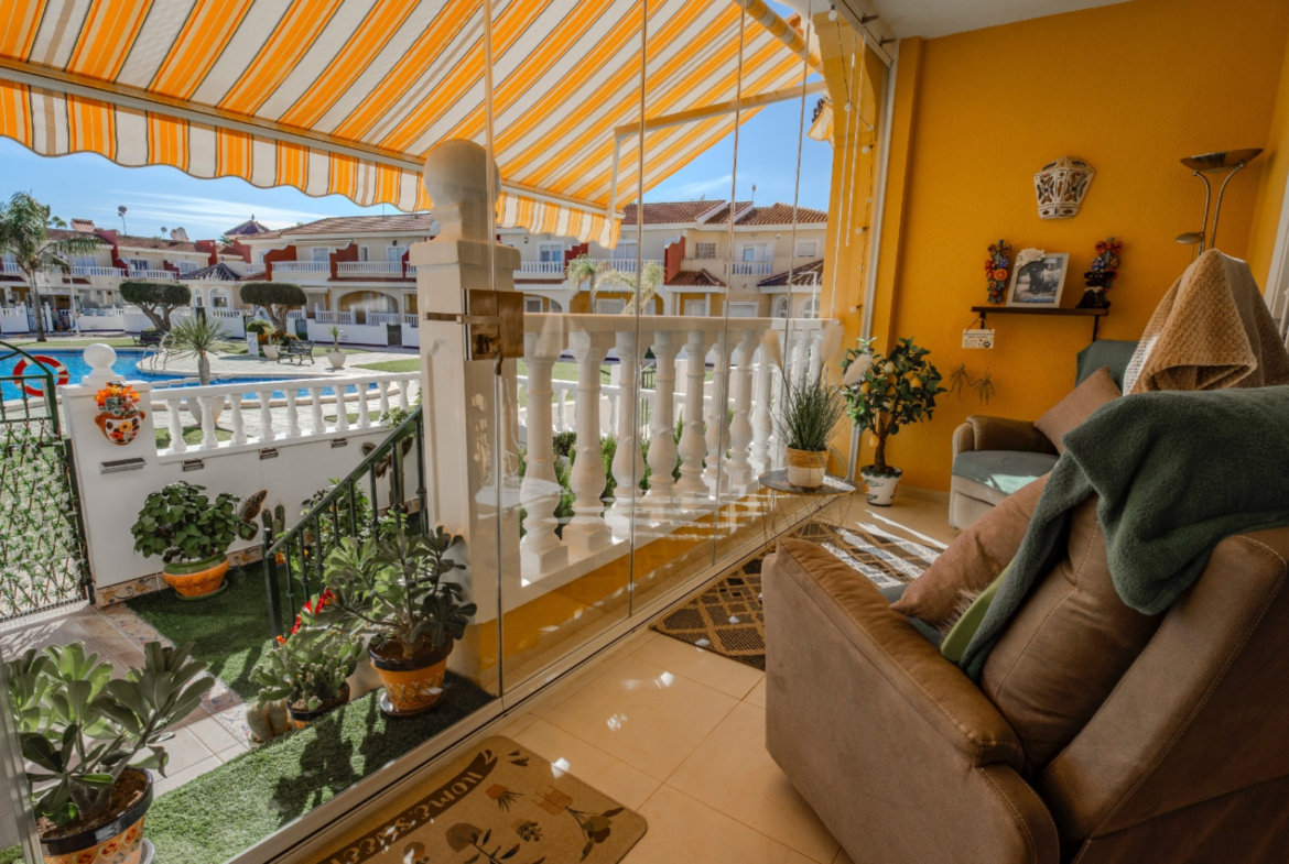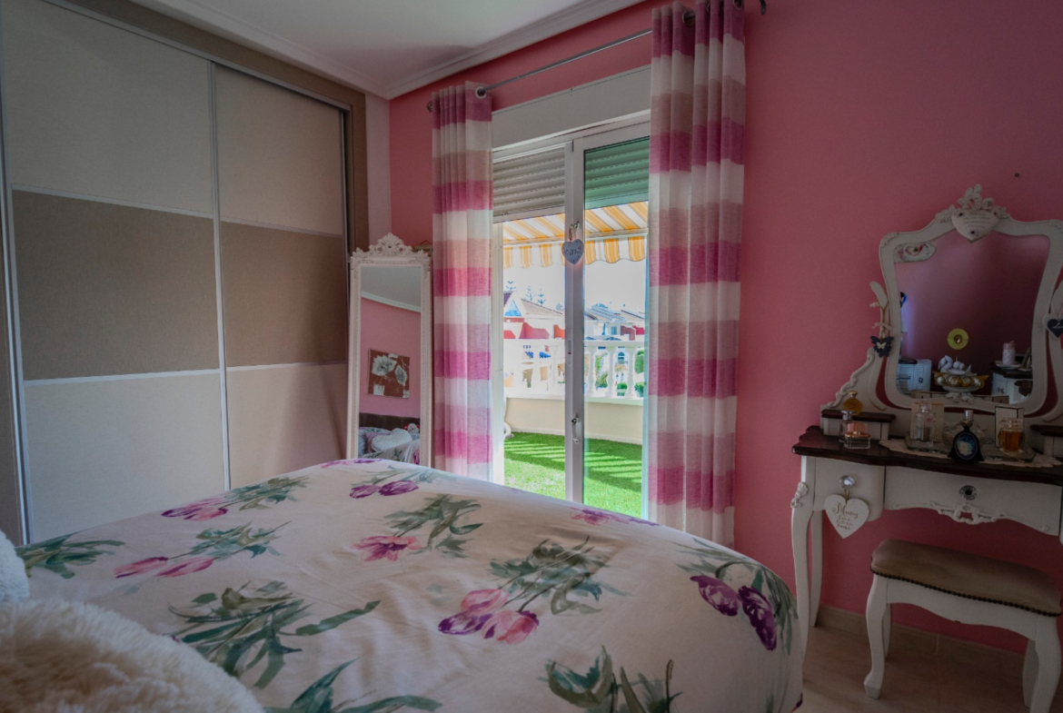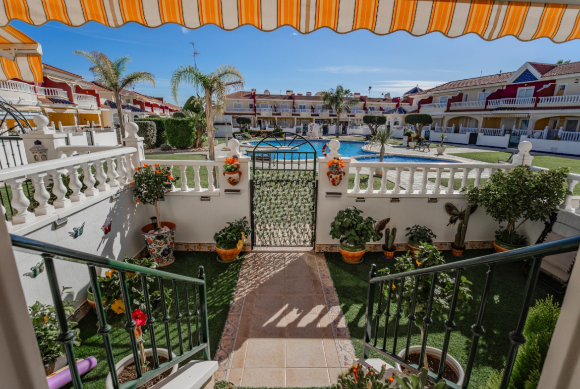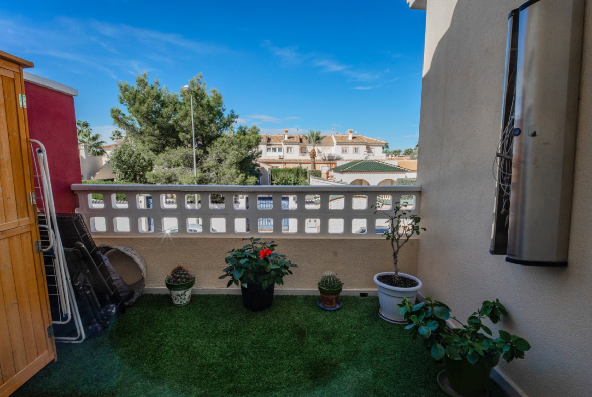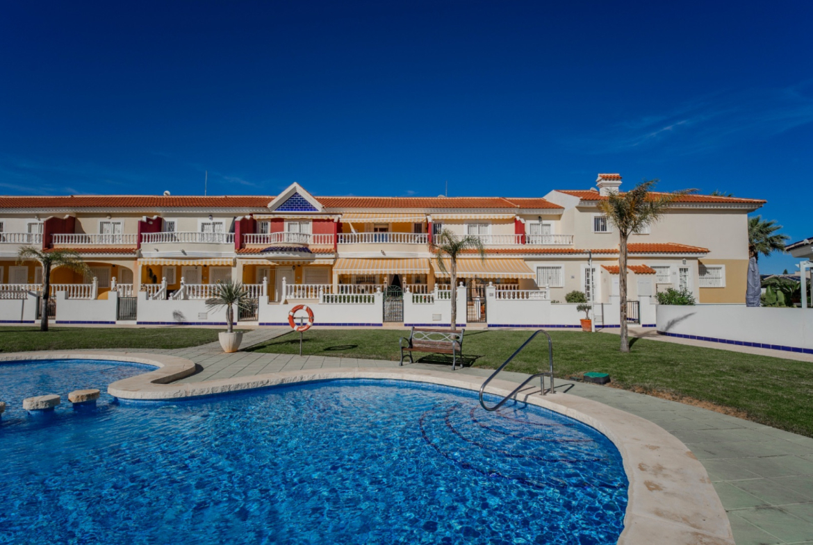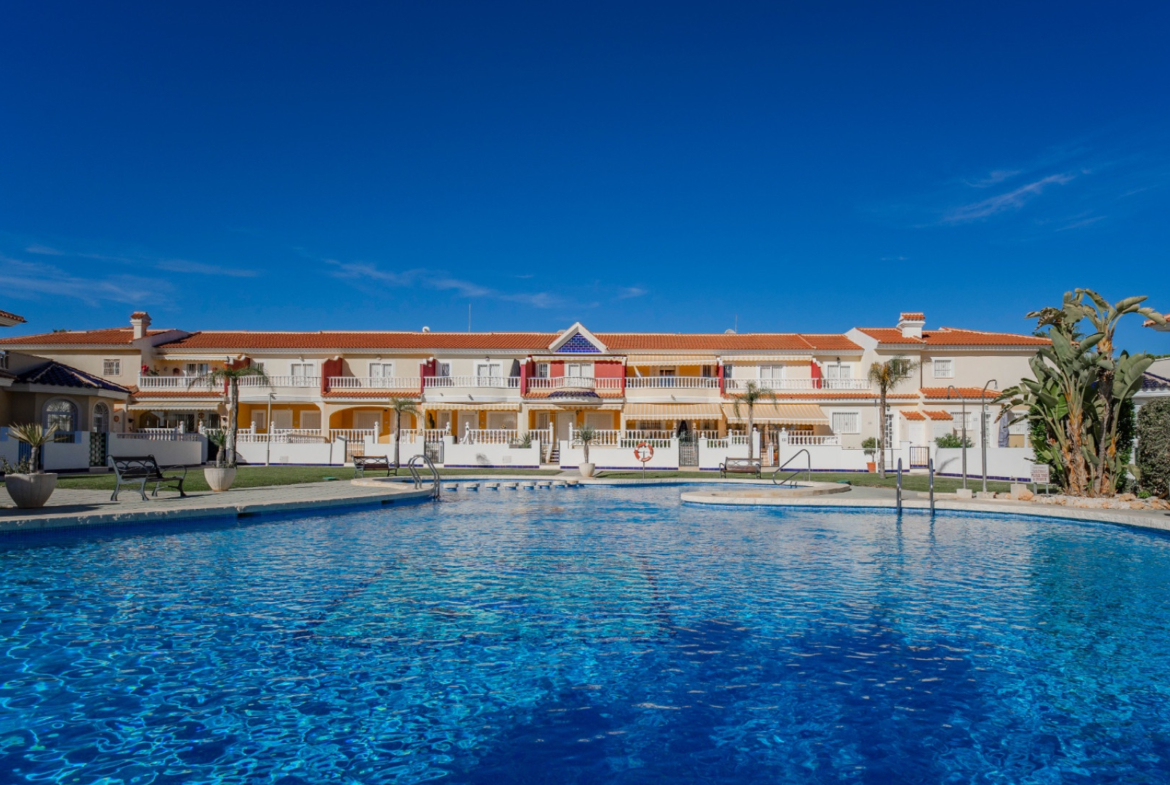 Dom znajduje się na terenie zadbanej urbanizacji z basenem wspólnotowym i terenami zielonymi, z wygodnym parkowaniem przy ulicy. Sklepy, restauracje i punkty usługowe oddalone są zaledwie 2 minuty, pola golfowe – około 10 minut, a piaszczyste plaże Guardamar del Segura – około 12 minut jazdy samochodem. Lotnisko w Alicante znajduje się w odległości około 35 minut.